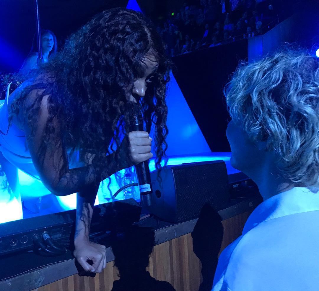 Solange serenading Tim Nelson | via instagram.com/cubsport