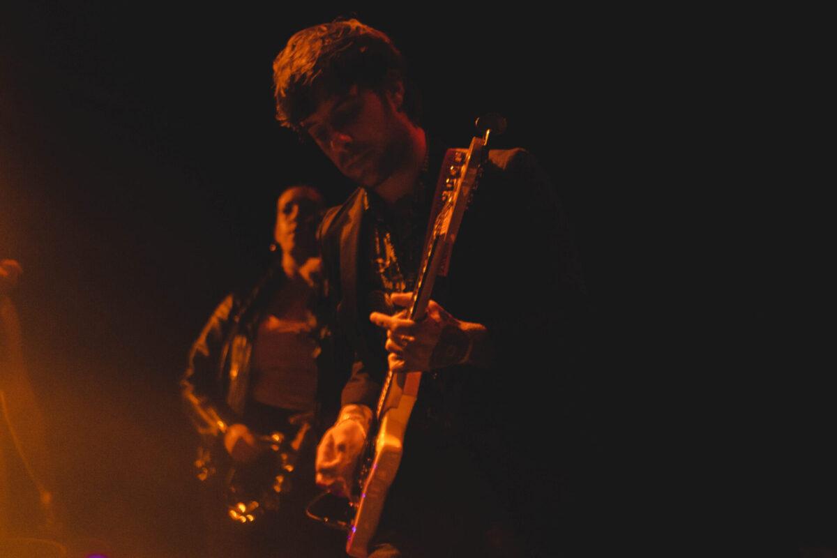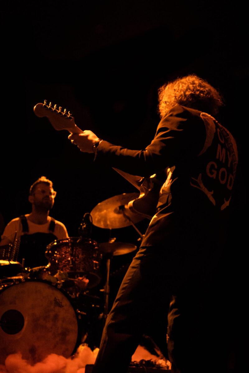 Morby appeared to extra comfortable in later portion of the night getting into some deeper cuts from his catalog, such as “I Have Been to the Mountain,” which was featured an outstanding saxophone solo, and “Dorothy” from 2016’s Singing Saw. He twisted his guitar and tossed his curly hair from side to side while jumping up onto the drum riser, showing the crowd his getup emblazoned with his newest album’s title down the back of his jacket, praying hands stitched to its front and candles shown on his pants below the knee before walking off stage.