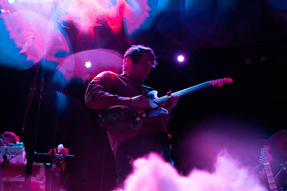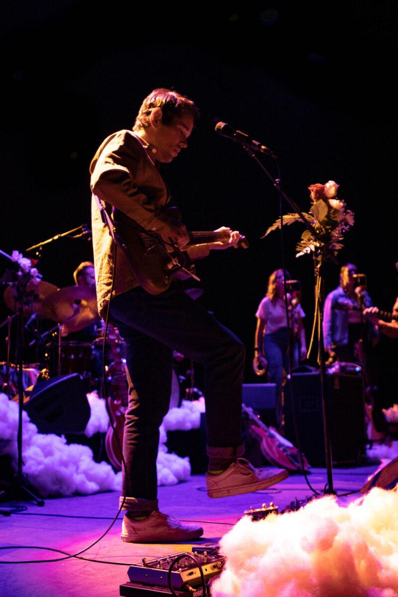 The clouds had settled on stage and flowers were in place: Kevin Morby was back for his first show in Philly since 2017. Touring in support of his acclaimed album Oh My God, Morby and his powerful backing band ran through a Sunday night set touching on all five of his neo-folk rock albums for a modest, yet enthusiastic Union Transfer crowd.