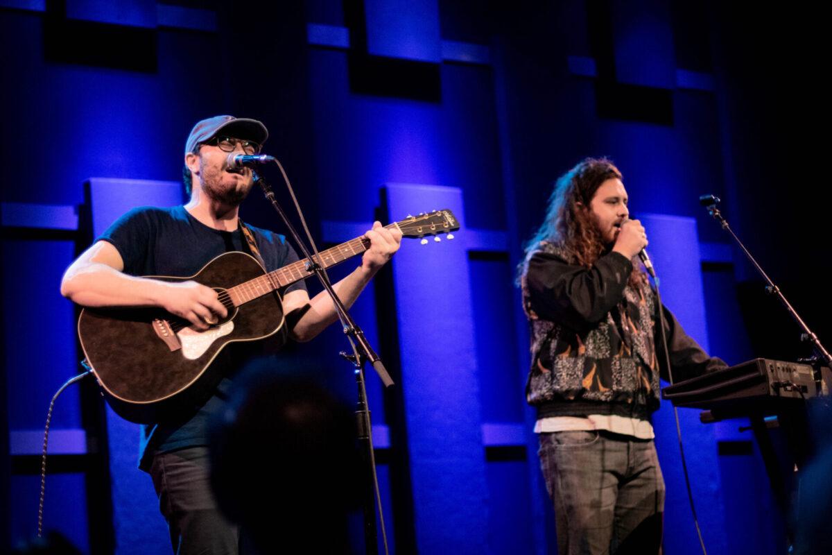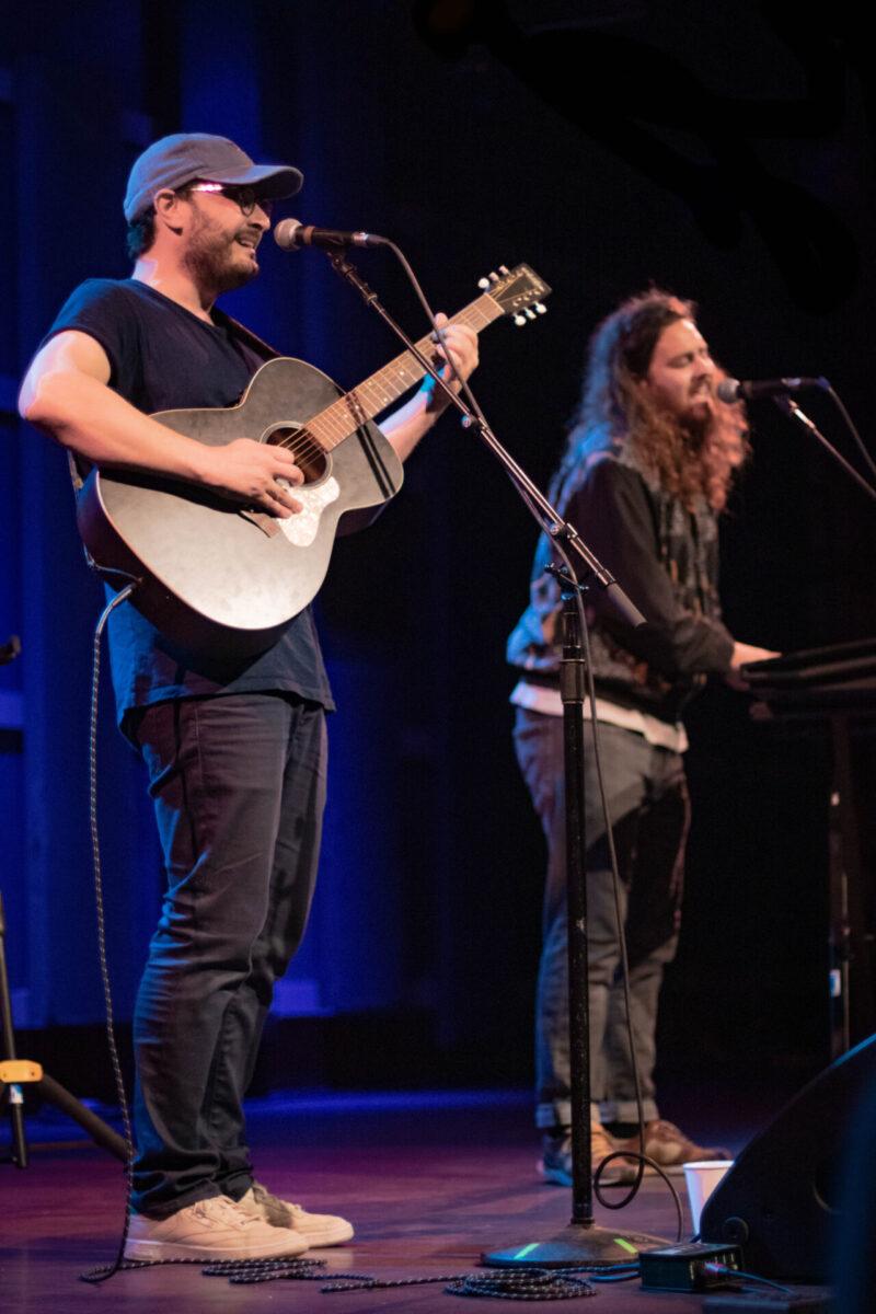After Paul Keen of Pawnshop Roses graced the stage for today’s Free At Noon, indie pop group JR JR followed up with a set that, to everyone’s surprised, wound up being semi-acoustic. Down a drummer, the band’s Daniel Zott and Joshua Epstein played stripped-down arrangements of songs from their newest album Invocations / Conversations, as well as some older cuts and a cover.