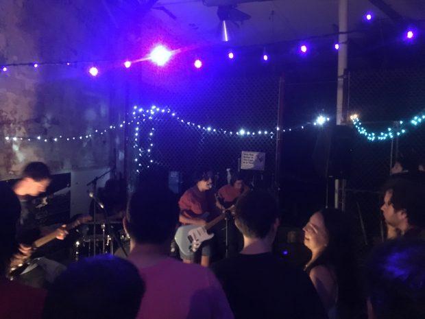 By the time Amy O took the stage, an even larger crowd had gathered – about one hundred people and one friendly dog. The Bloomington, Indiana trio started their set with a warm rendition of “Arrow”, the title track from their 2016 debut album. Throughout the set, frontwoman Amy Oelsner wore a sweet smile as she plucked and strummed with her thumb and fingers. Electric bass and stripped-down drums supported her soft overdrive guitar parts; some of the trio’s most poignant moments came when the guitar and bass played melodic parts together with the sounds of drums and voice stripped away. Oelsner also gave thanks for her relationship with Free Cake, and told the crowd that she found it “really inspiring to be around their music and them as people.” Amy O also performed an unreleased new song in which Oelsner sang about “the sun-kissed younger version of me,” and they finished their set with “Sunday Meal” from their 2017 album Elastic.