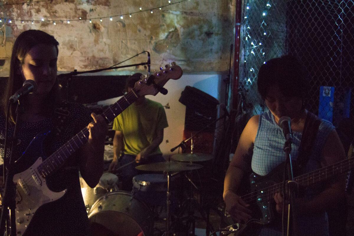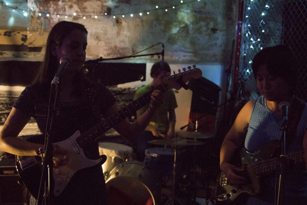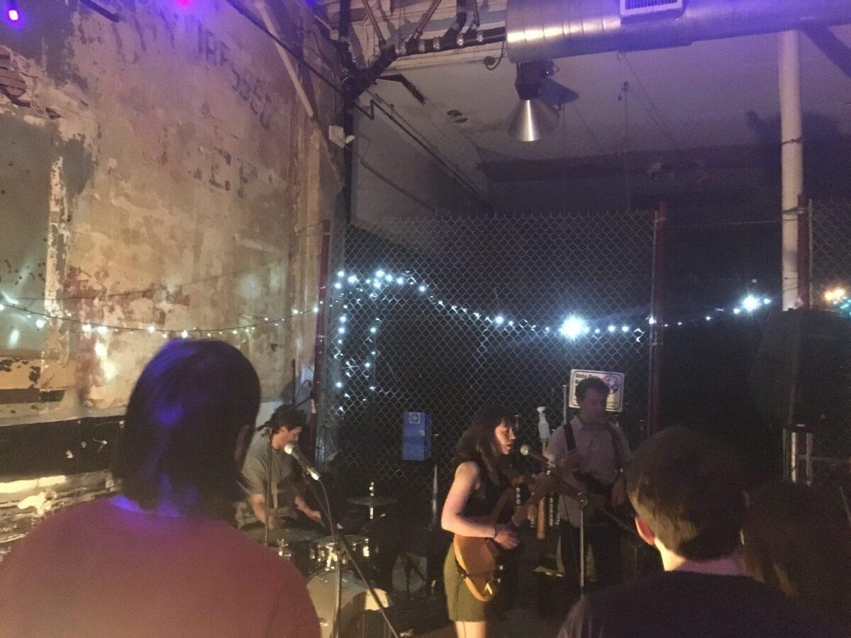 By the time Amy O took the stage, an even larger crowd had gathered – about one hundred people and one friendly dog. The Bloomington, Indiana trio started their set with a warm rendition of “Arrow”, the title track from their 2016 debut album. Throughout the set, frontwoman Amy Oelsner wore a sweet smile as she plucked and strummed with her thumb and fingers. Electric bass and stripped-down drums supported her soft overdrive guitar parts; some of the trio’s most poignant moments came when the guitar and bass played melodic parts together with the sounds of drums and voice stripped away. Oelsner also gave thanks for her relationship with Free Cake, and told the crowd that she found it “really inspiring to be around their music and them as people.” Amy O also performed an unreleased new song in which Oelsner sang about “the sun-kissed younger version of me,” and they finished their set with “Sunday Meal” from their 2017 album Elastic.