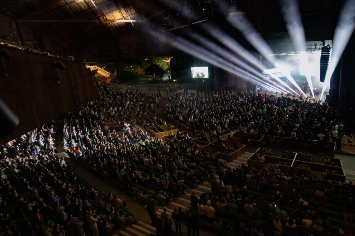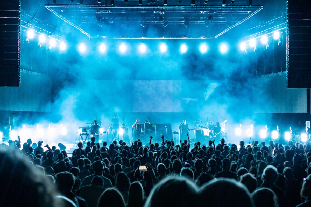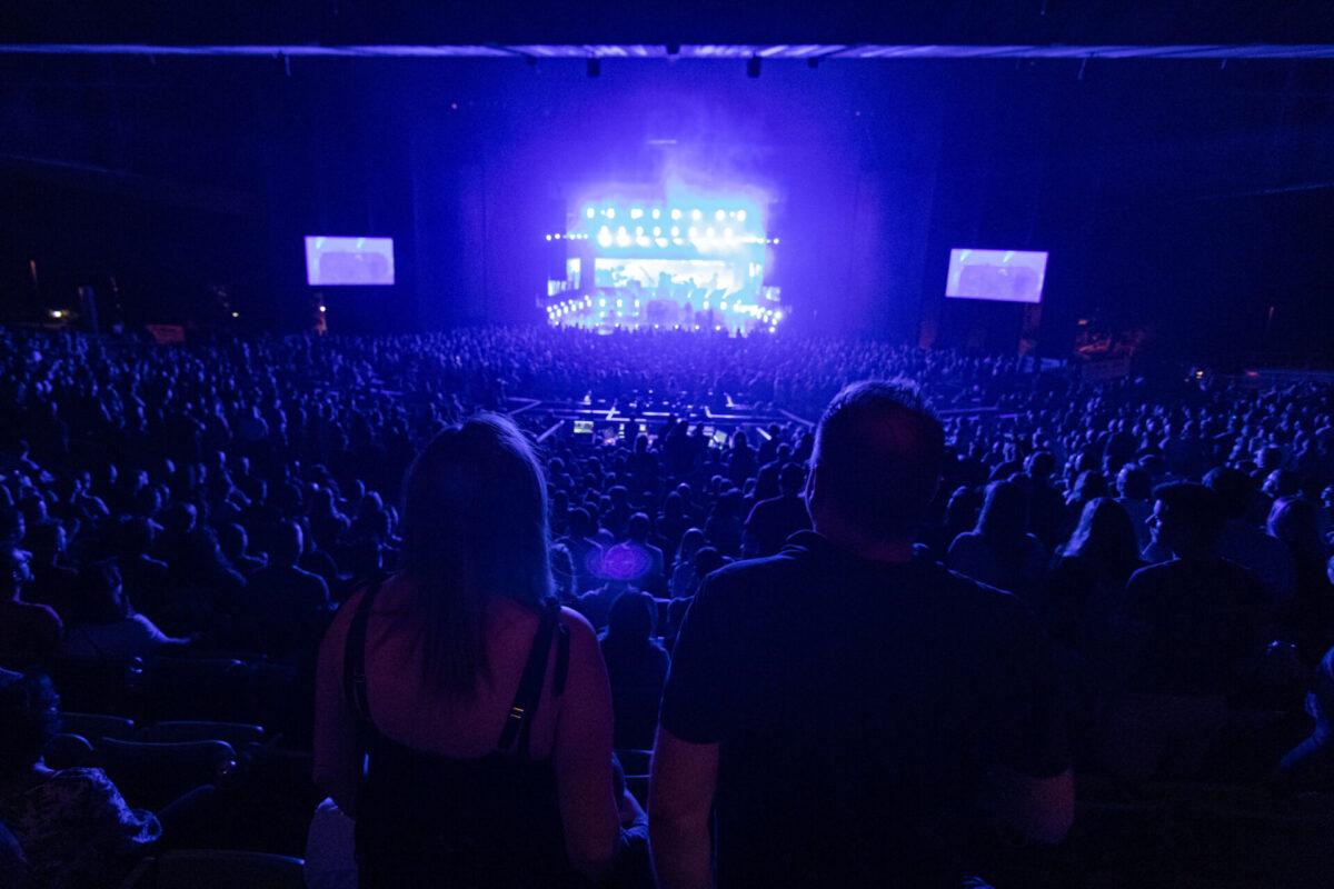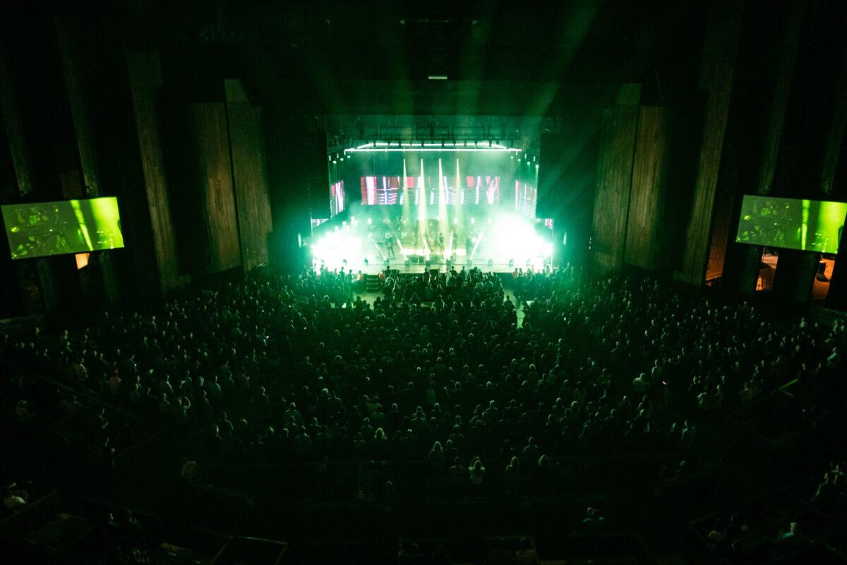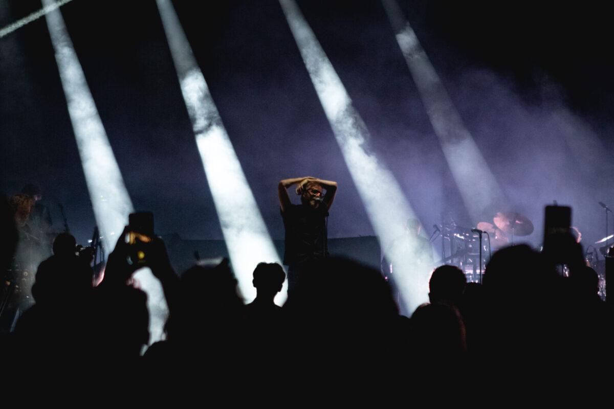 More favorites from High Violet and Trouble Will Find Me continued to move the room, including the devastating “Pink Rabbits” and the transportive “Hard to Find” – under indigo lights and thick stage smoke, through which Bryan’s neon yellow trucker cap gleamed. “Graceless” was the night’s joyful peak: when lush layers of blue and magenta filled the room, Berninger walked out into the audience and tiptoed across several rows of seats as several roadies chased after him, vigorously uncoiling his microphone cable. The title track “I Am Easy To Find” followed as a melancholy counterpoint, while a plain white light brought stillness to the stage and the trio of singers wondered, “How long have we been here?” The LED screens showed footage of the first several rows of the hushed crowd, again in black and white, next to Aaron’s hand on the piano keys. Reflective songs like “I Am Easy to Find” revealed how comfortably The National have grown throughout their twenty years together, as several of them have split off to live in different cities with their spouses and children. Now more than ever, these musicians have nothing to hide. They reject rock-and-roll hauteur on stage in order to legitimize candid stories about their very real lives, and they make remarkable the everyday moments that so many of us take for granted when we live too fast.