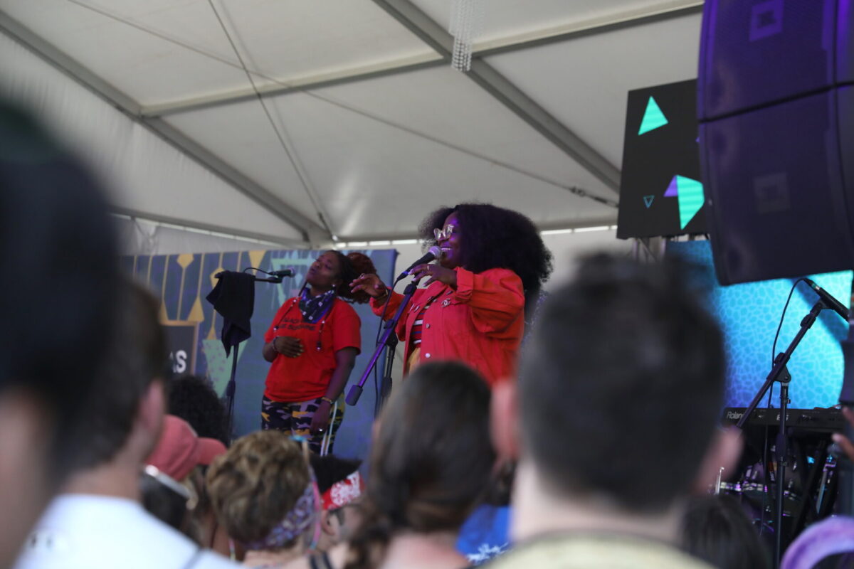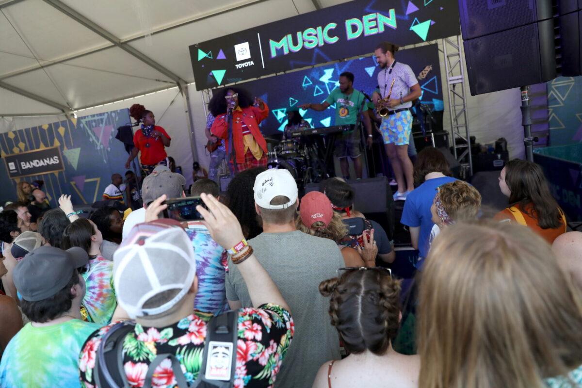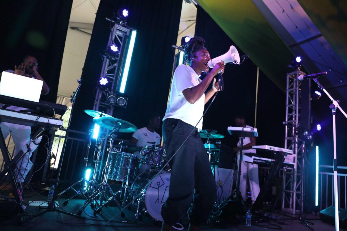The day began with XPN favorites Tank and the Bangas, who played two sets: a day-opening set at the intimate Toyota Music Den stage and a proper set at the larger Lawn Stage. The first set was like a morning stretch for the New Orleans band: they played more mellow songs that felt very improvisatory and featured flautist / saxophonist Albert Allenback heavily. This still floored the crowd, despite the down tempo vibe, and their Lawn Stage set dialed their energy up to the max.