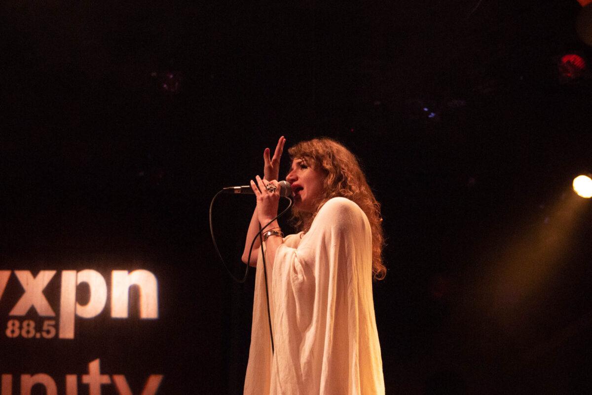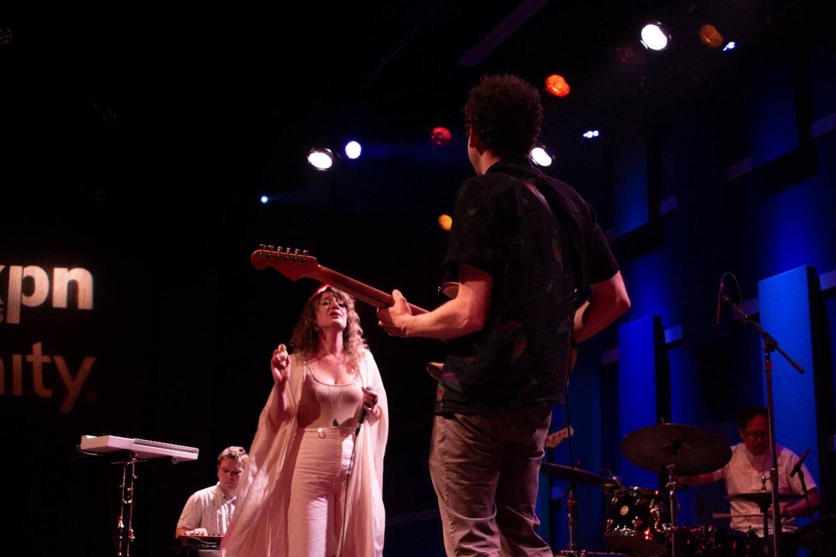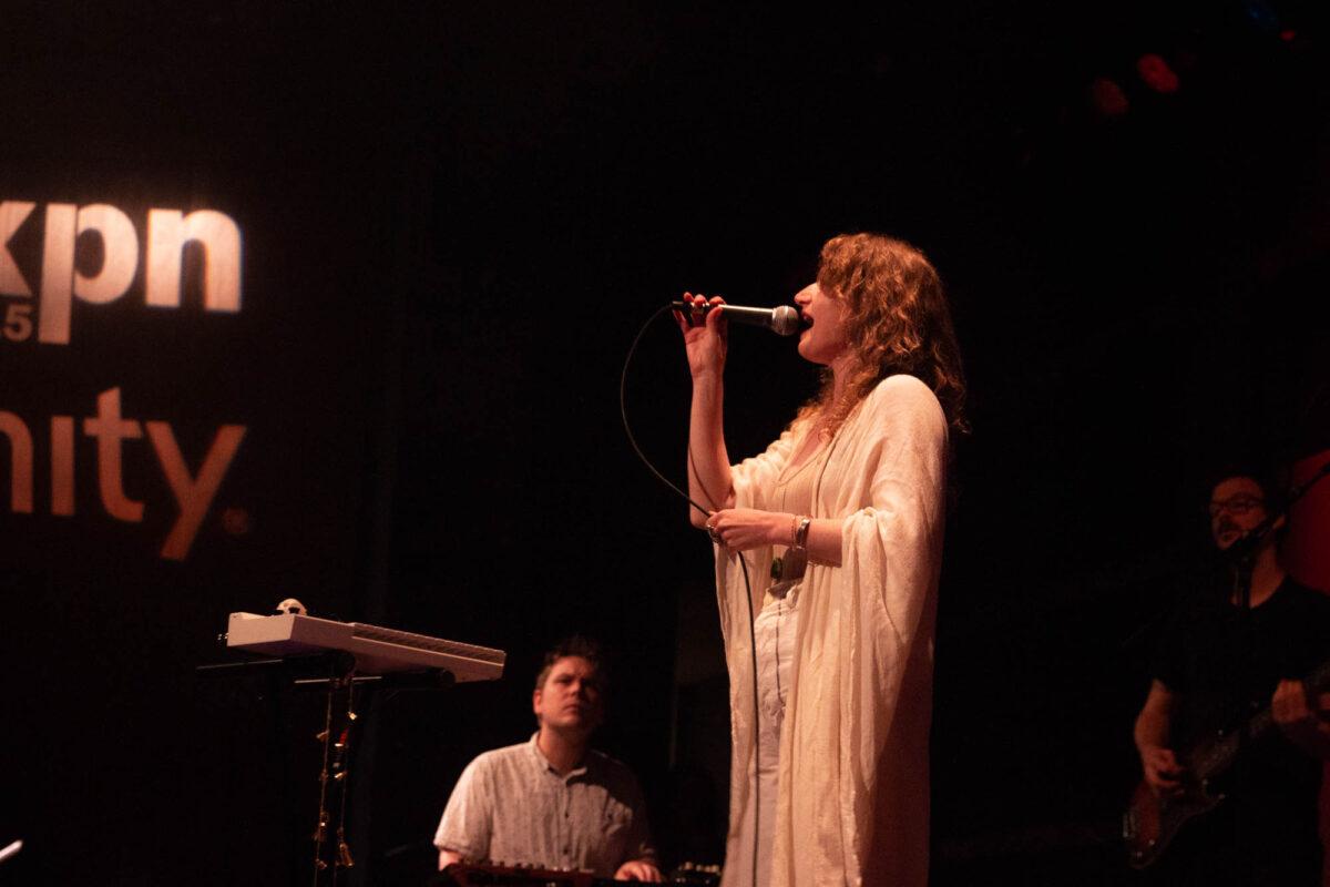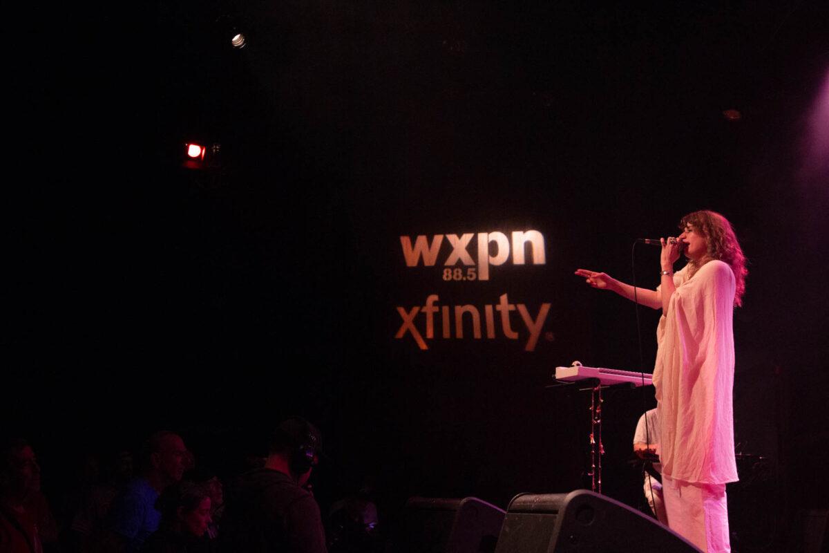 Pure Bathing Culture began with newer cuts, “Ad Victoriam” and “Devotion” off of Night Pass. The whirling synth lines and Versprille’s washed out vocals rang throughout as she playfully danced all across the stage. Shifting into the past, the band chose the title track off of 2015’s Pray For Rain. A classic, dancey piece of synth pop, Versprille’s vocals shined through once again. As their set came to a close, Hindman and Versprille came together to perform an acoustic version of one of their oldest songs, “Ivory Coast.” Hindman’s beautiful guitar chords and Versprille’s haunting vocal delivery made for a terrific end to PBC’s set for WXPN’s Free at Noon series.