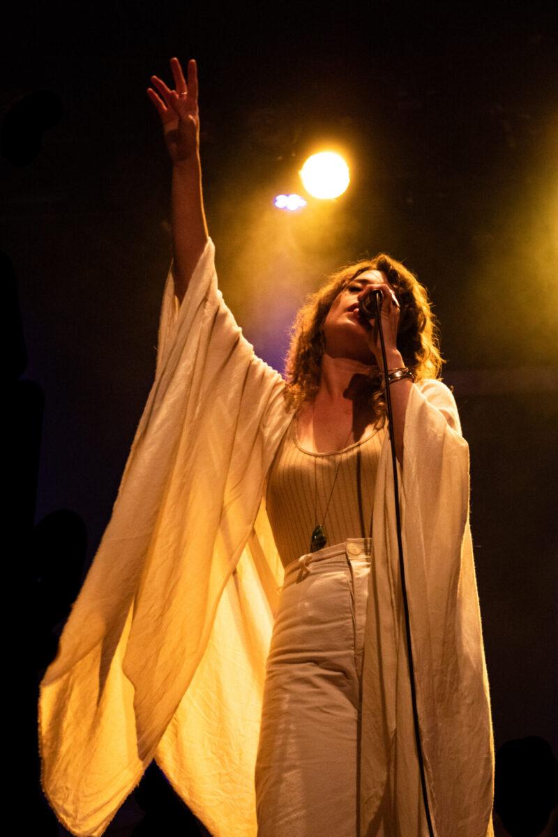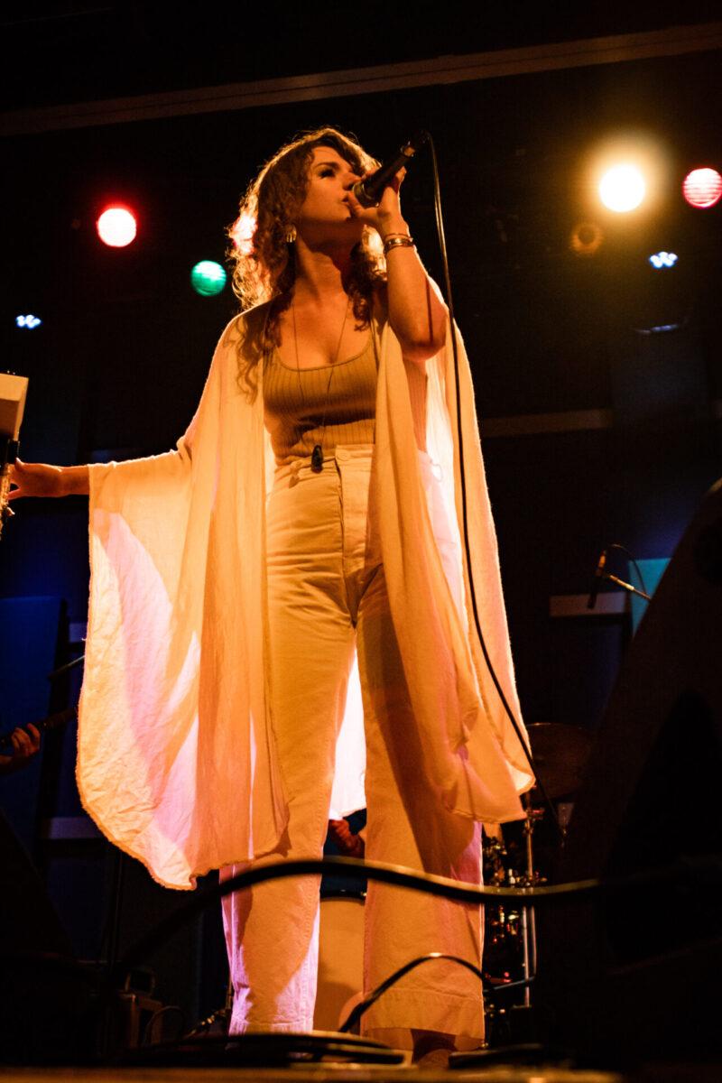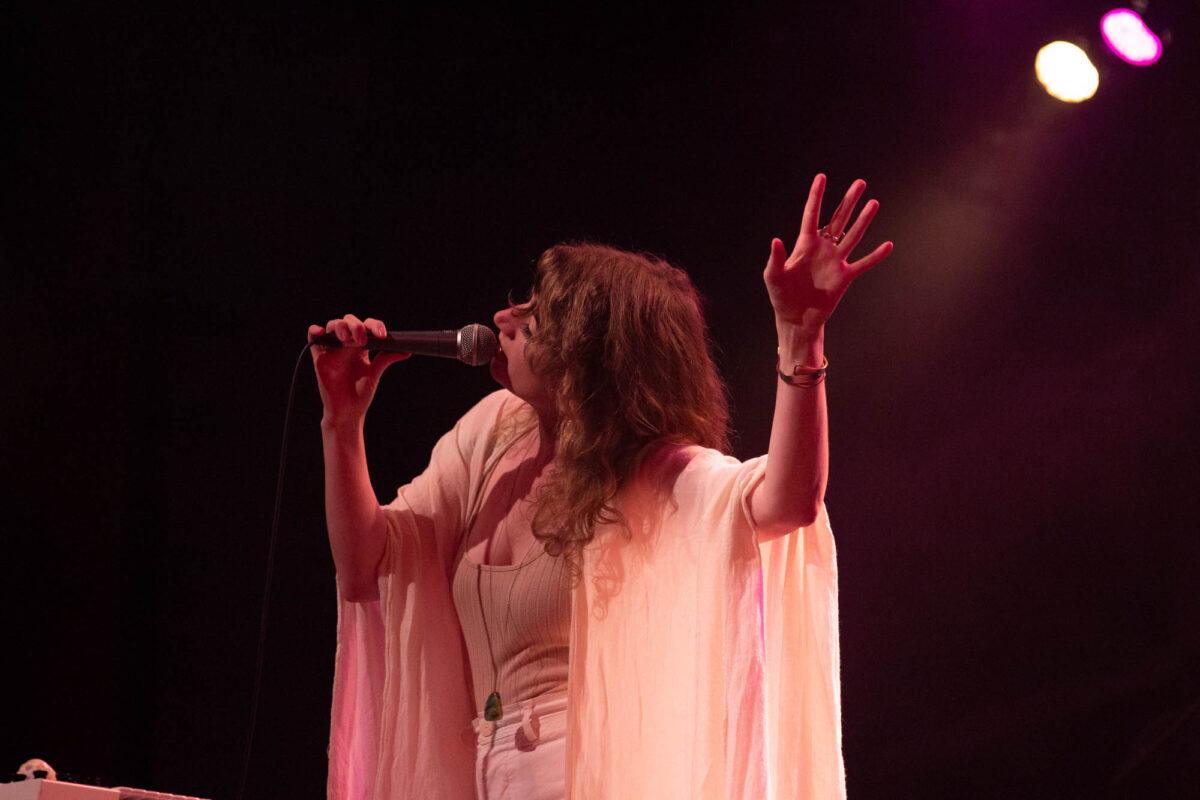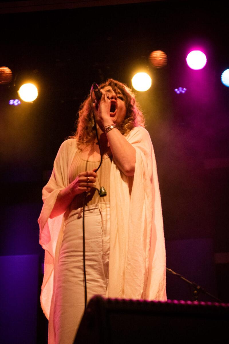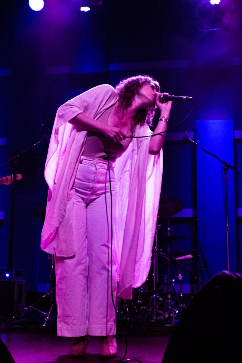 Pure Bathing Culture began with newer cuts, “Ad Victoriam” and “Devotion” off of Night Pass. The whirling synth lines and Versprille’s washed out vocals rang throughout as she playfully danced all across the stage. Shifting into the past, the band chose the title track off of 2015’s Pray For Rain. A classic, dancey piece of synth pop, Versprille’s vocals shined through once again. As their set came to a close, Hindman and Versprille came together to perform an acoustic version of one of their oldest songs, “Ivory Coast.” Hindman’s beautiful guitar chords and Versprille’s haunting vocal delivery made for a terrific end to PBC’s set for WXPN’s Free at Noon series.