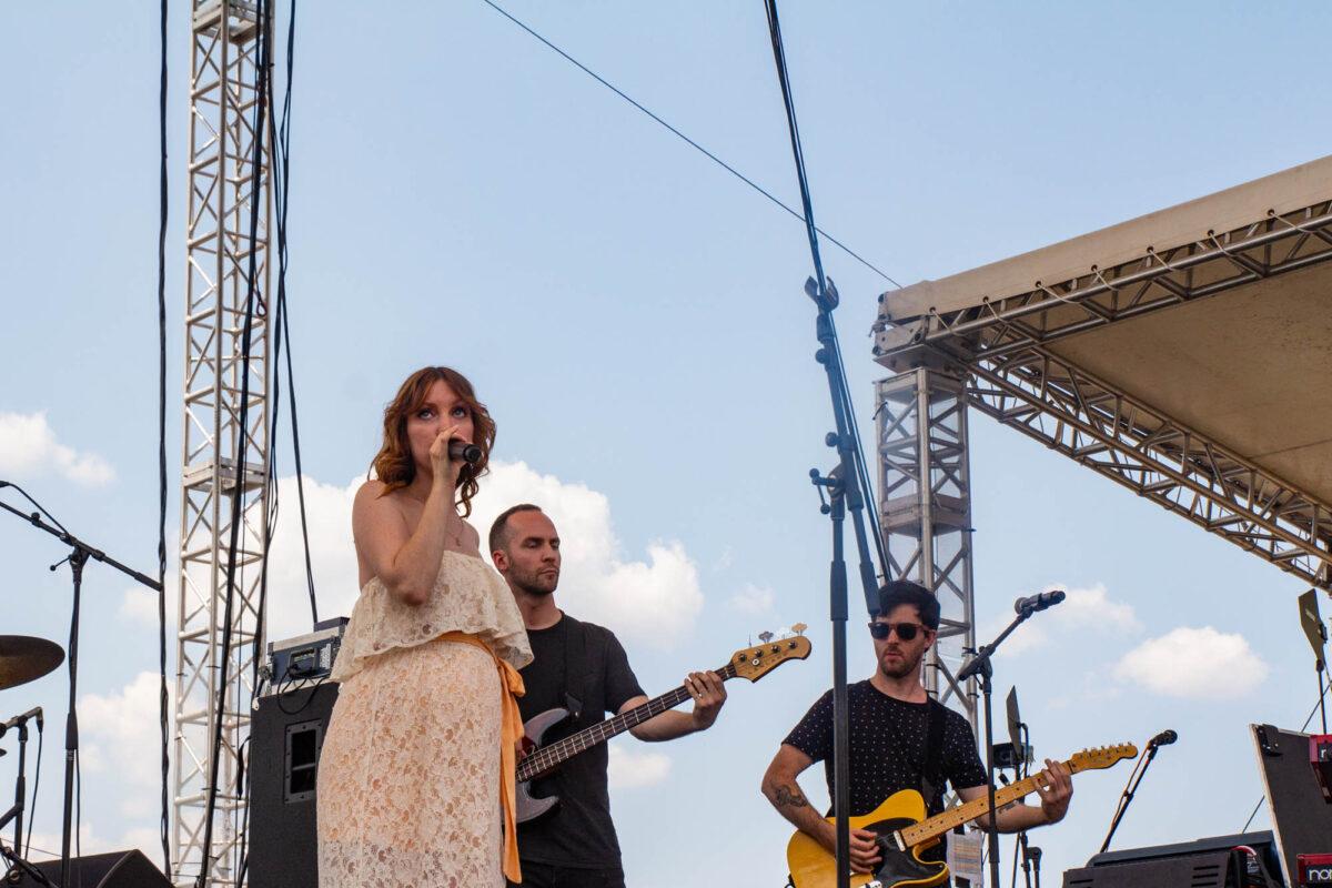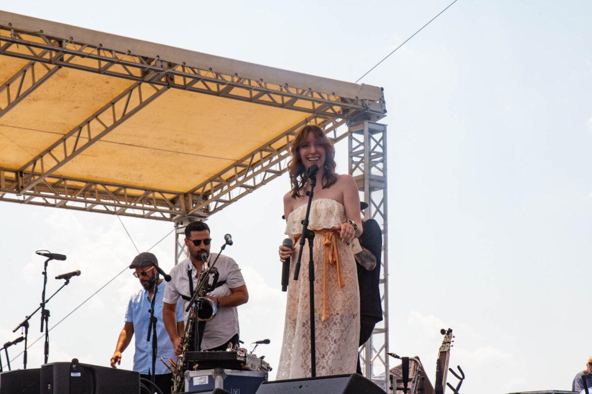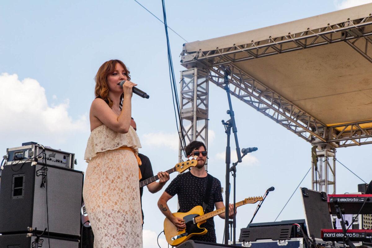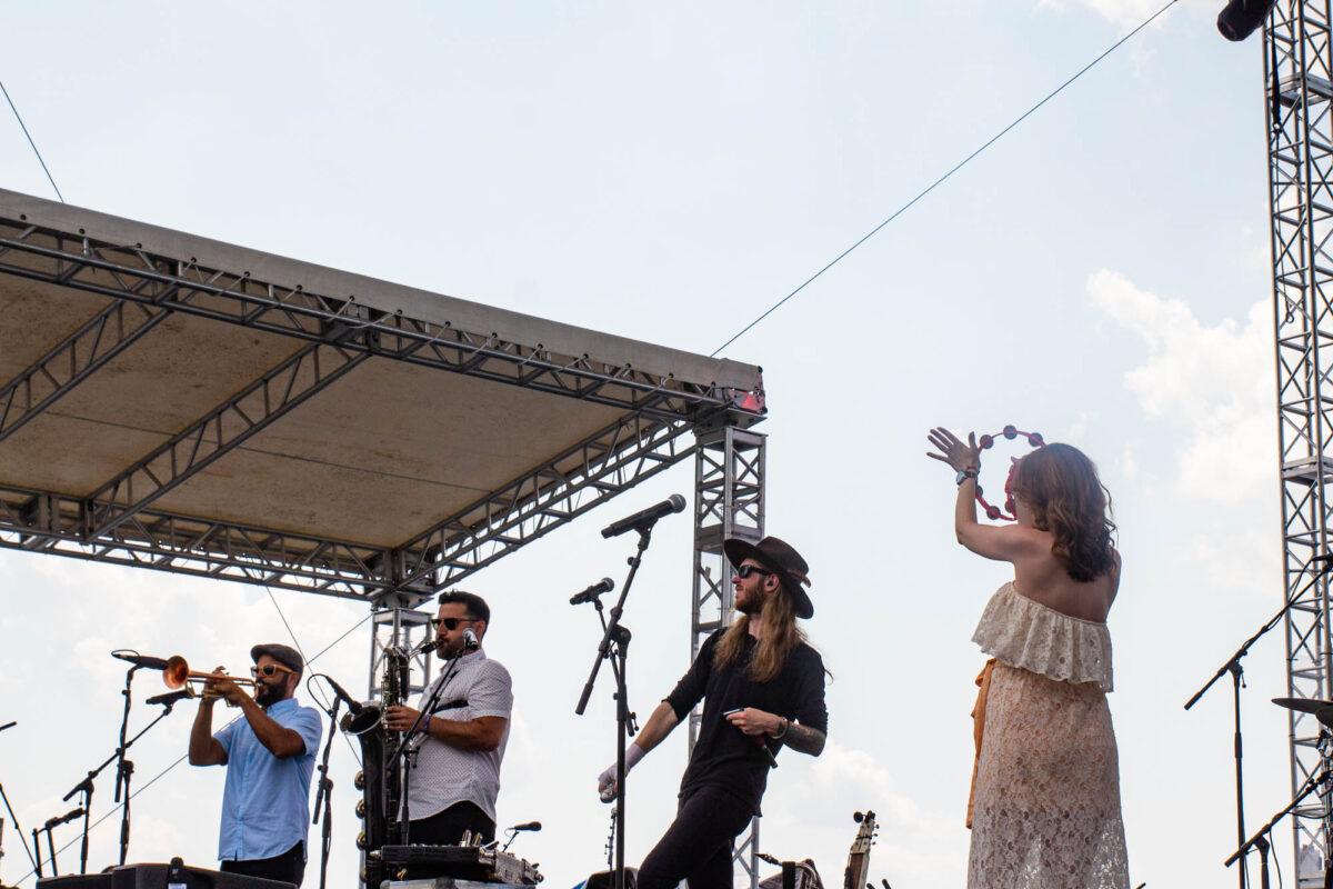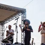 Backed by her seven-piece band The Dirty Birds, Sister Sparrow brought a dose of swingin’, soulful sounds to the River Stage this afternoon. Arleigh Kincheloe is the singer-songwriter behind the high-energy project, which blends classic brass band sounds with contemporary pop influences for a timeless sound. The Brooklyn-based collective released their fourth album Gold last year, and came prepared to cool off the sun-drenched crowd with the new tunes.