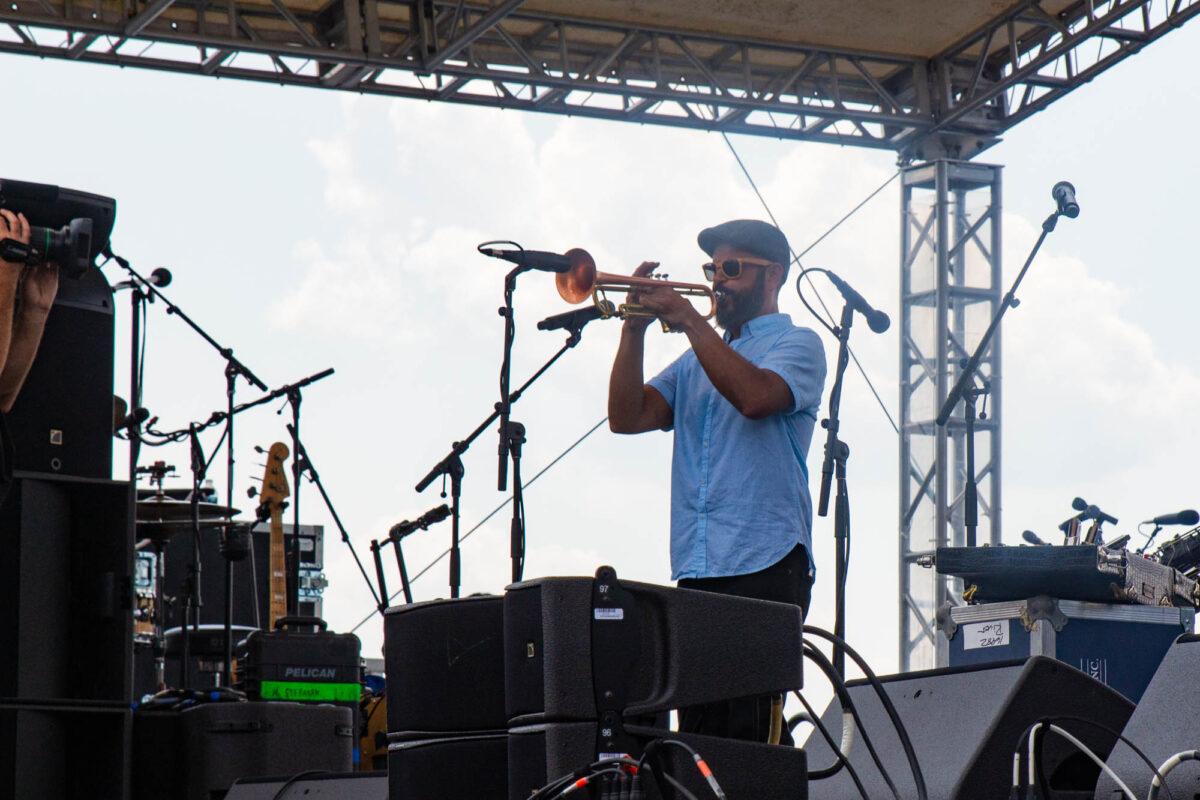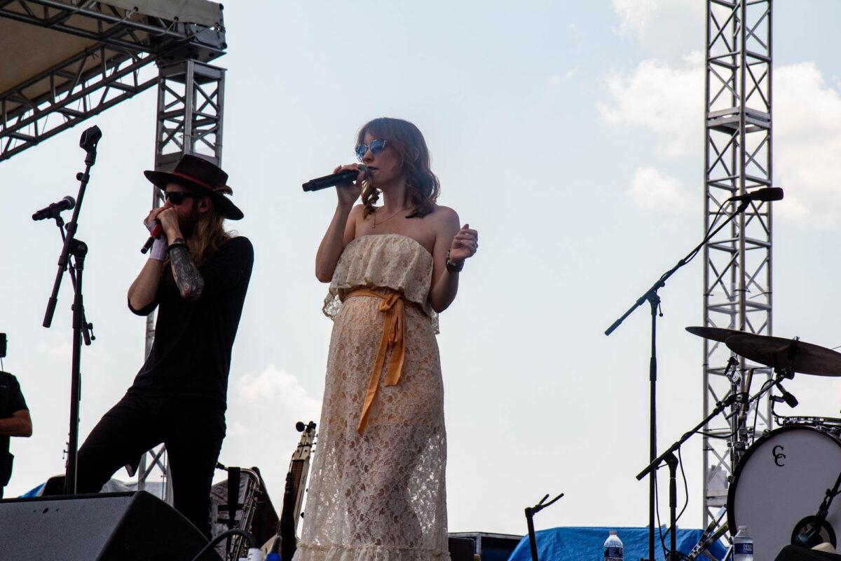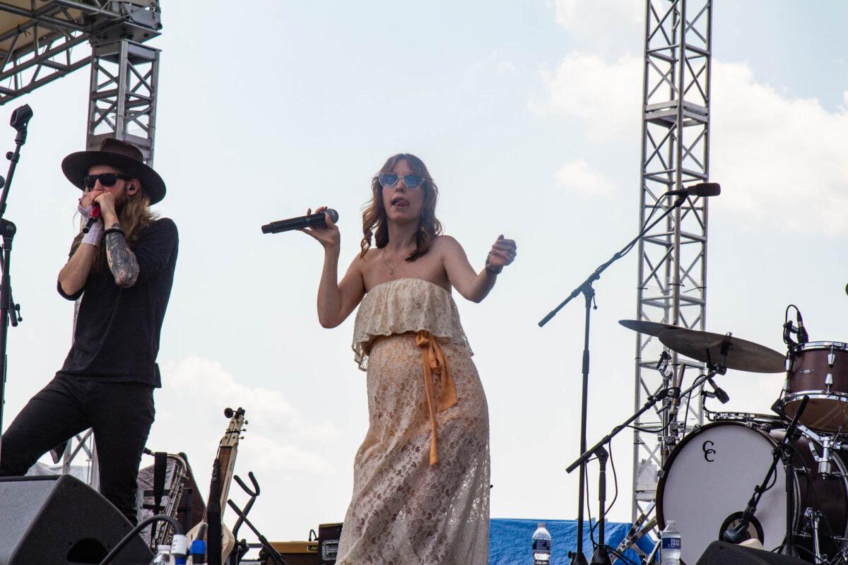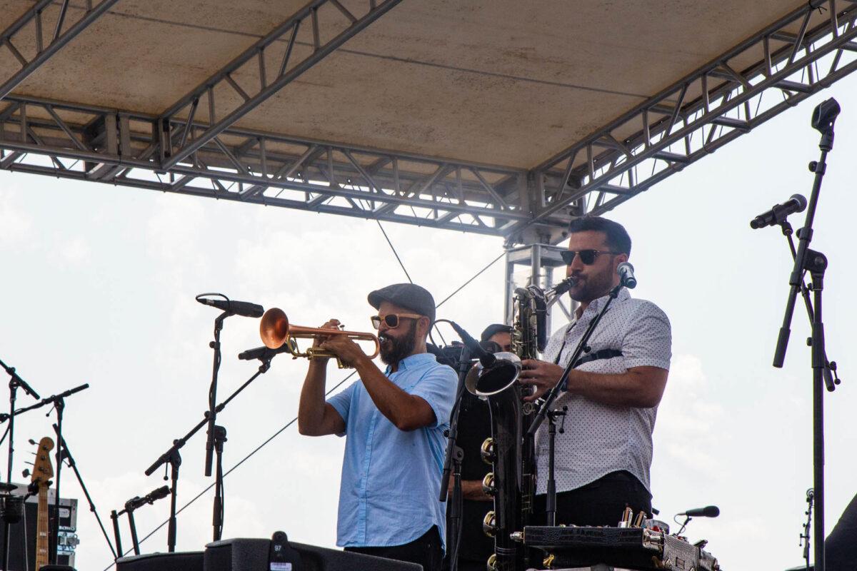 Backed by her seven-piece band The Dirty Birds, Sister Sparrow brought a dose of swingin’, soulful sounds to the River Stage this afternoon. Arleigh Kincheloe is the singer-songwriter behind the high-energy project, which blends classic brass band sounds with contemporary pop influences for a timeless sound. The Brooklyn-based collective released their fourth album Gold last year, and came prepared to cool off the sun-drenched crowd with the new tunes.