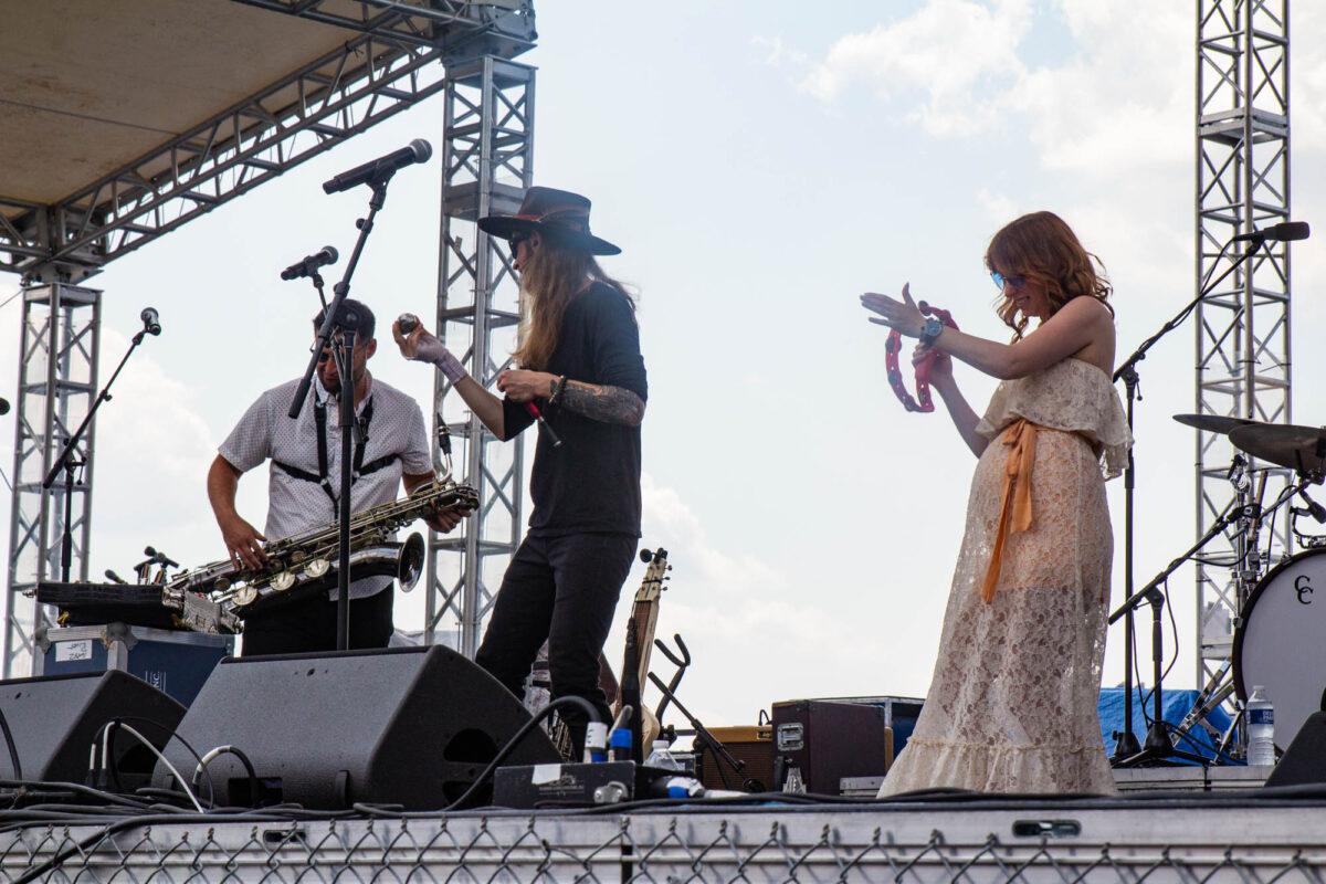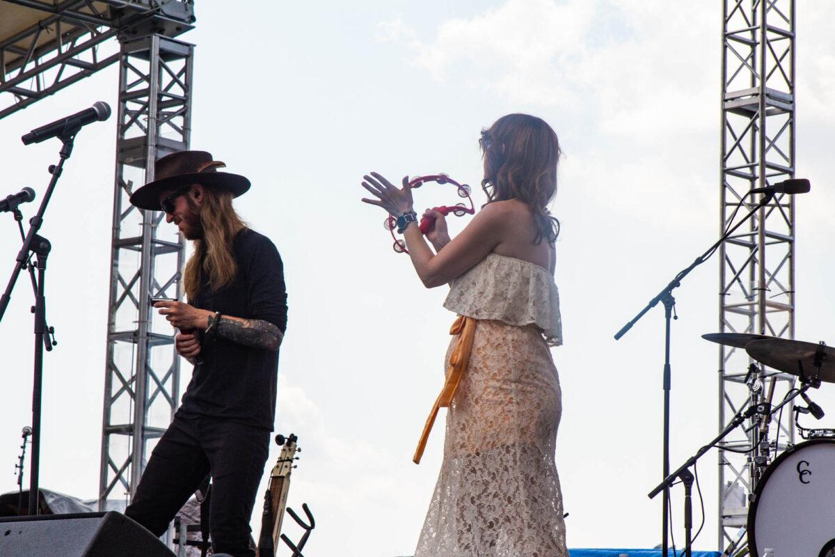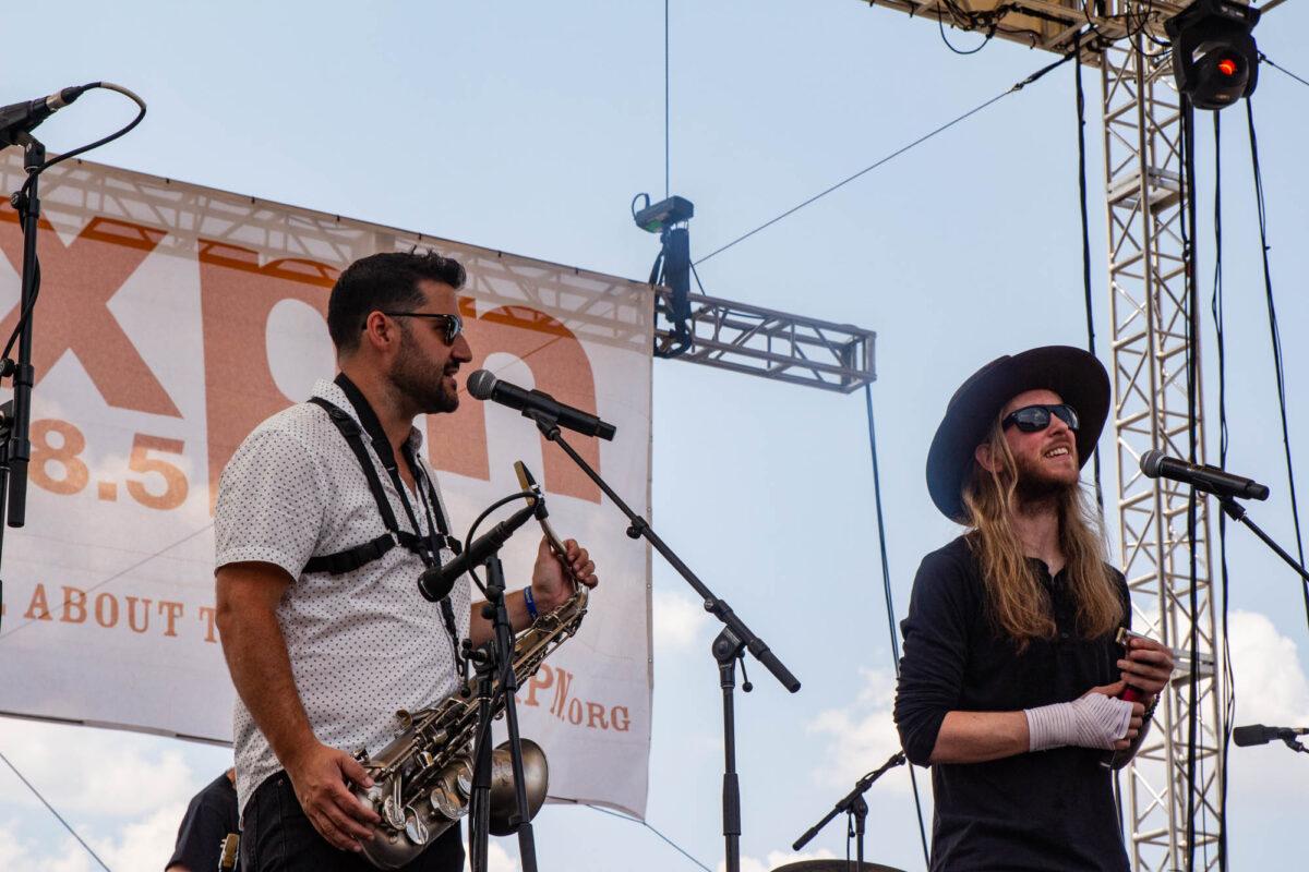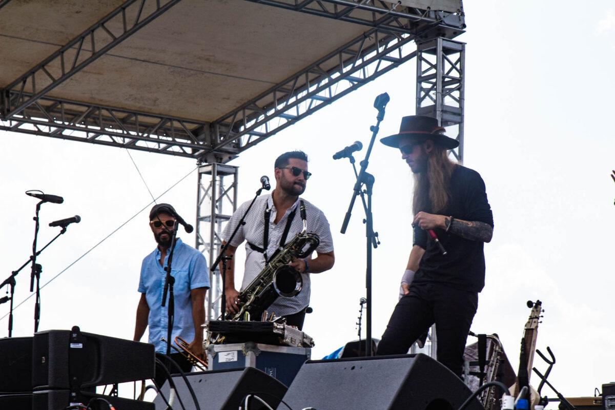 Sister Sparrow & The Dirty Birds kept the mood bright throughout their eight-song set, pausing only to introduce the members of the power-packed band, which includes sax, trumpet, and Kincheloe’s brother Jackson on harmonica. The spirited and charismatic bandleader has spent a lot of time building her signature sound, and her skill as a songwriter and performer shines through with each powerfully belted song and unwavering energy. Today’s set was consistently lively, with each funky, foot-stomping track blending right into the next as Kincheloe led the crowd to clap along to her tambourine. Revisit the set with the photos and audio below.