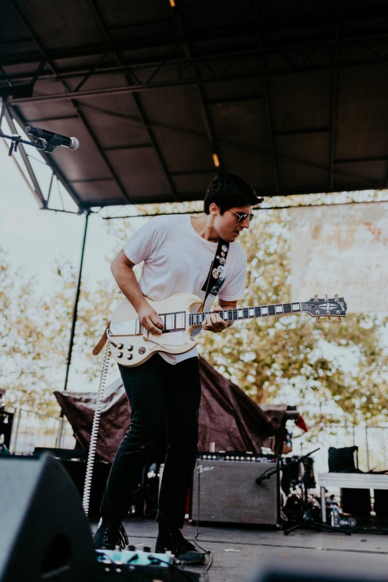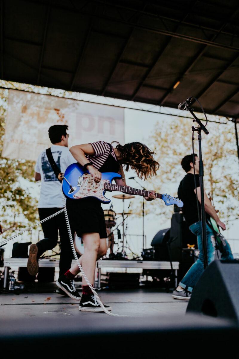 The Vaughns moved swiftly through a selection of tracks off their debut full-length album, F.O.M.O., which was just released in May. With their brightly colored guitars and fun song titles, The Vaughns play scrappy indie rock that’s perfect to dancing and/or shouting along to, and it’s clear that the band isn’t afraid to have fun while they play.