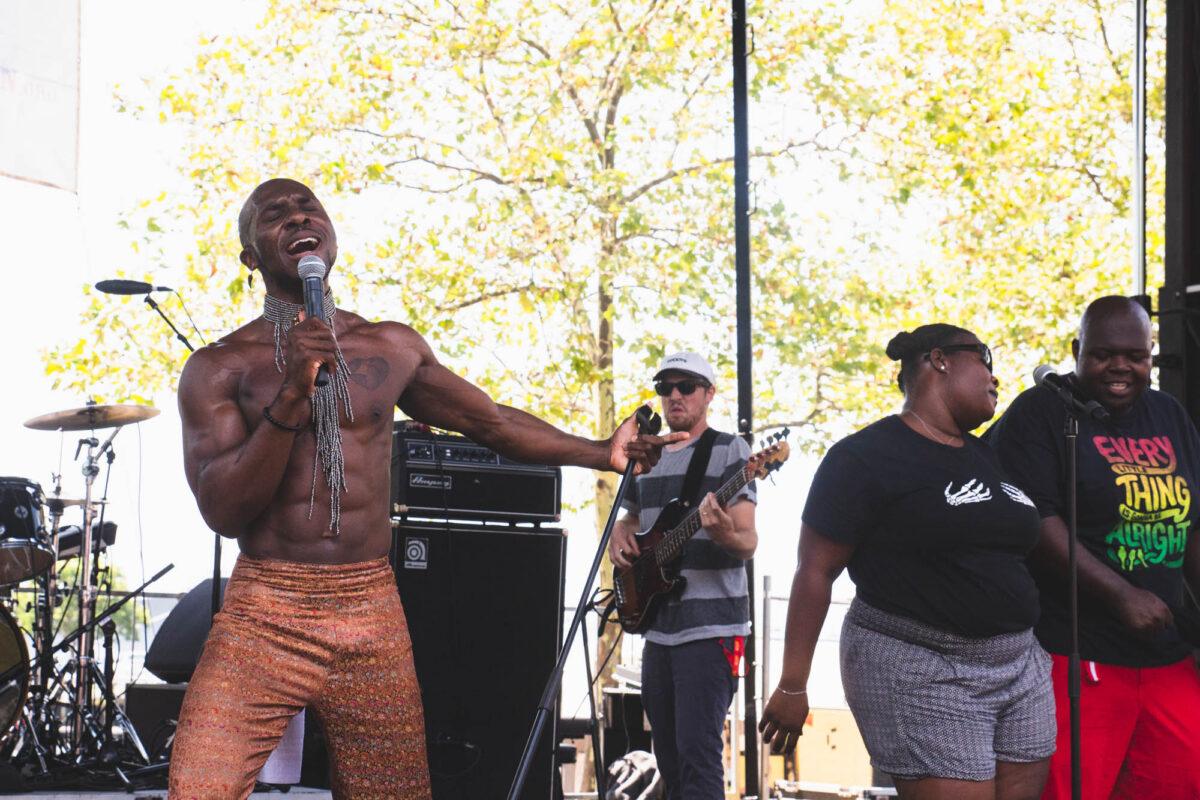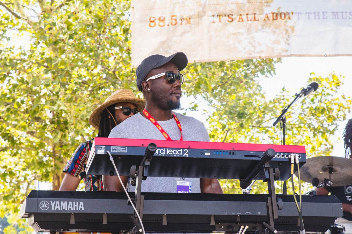 The Marina Stage crowd was still filtering in when Zeek Burse took the stage this afternoon, but as his powerful sound filled the park, the audience showed up — and even though it’s early in the day, they came ready to dance.