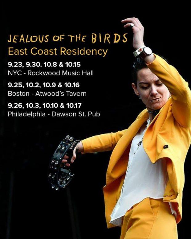 Jealous of the Birds has announced a series of East Coast residencies, playing small venues in Philly, New York and Boston. She’ll be holding down the fort at Dawson St. Pub in Manayunk over four Thursdays this fall: September 26 and October 3, 10, and 17.