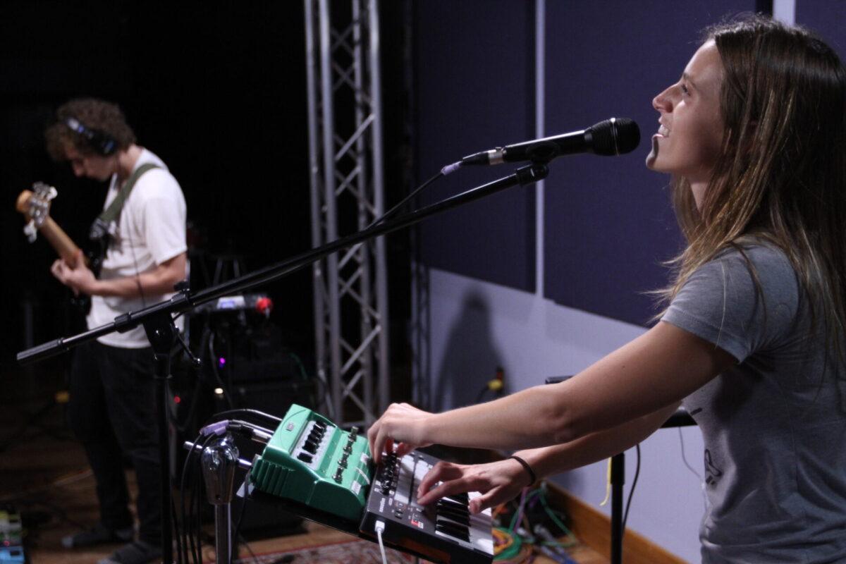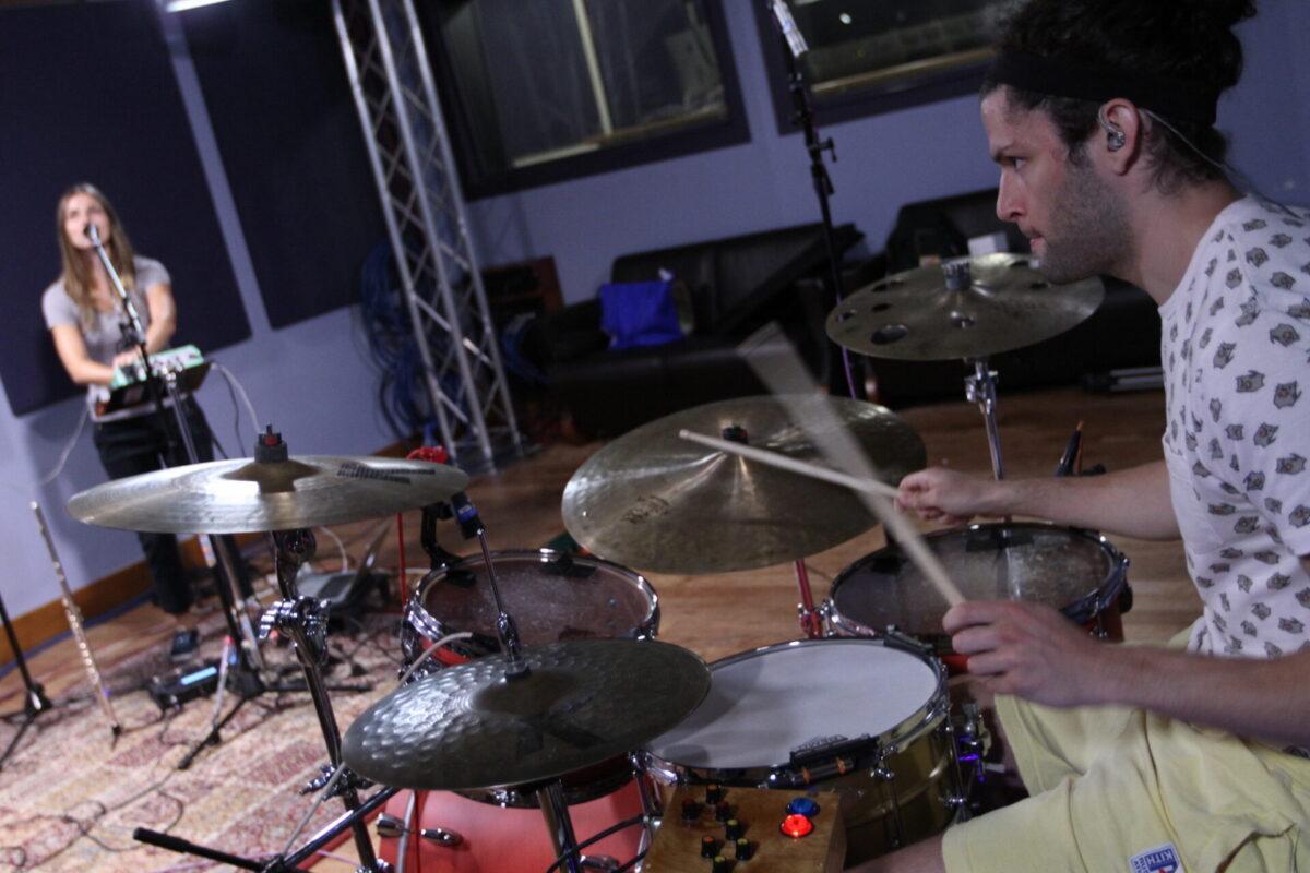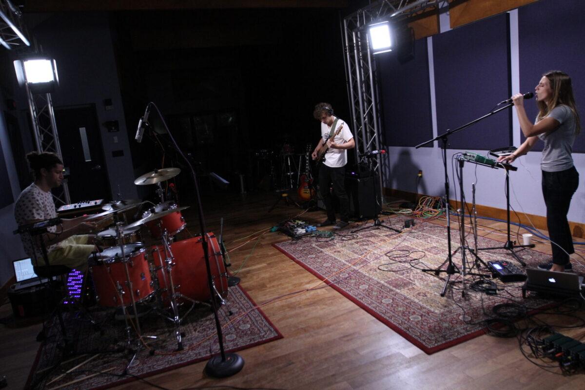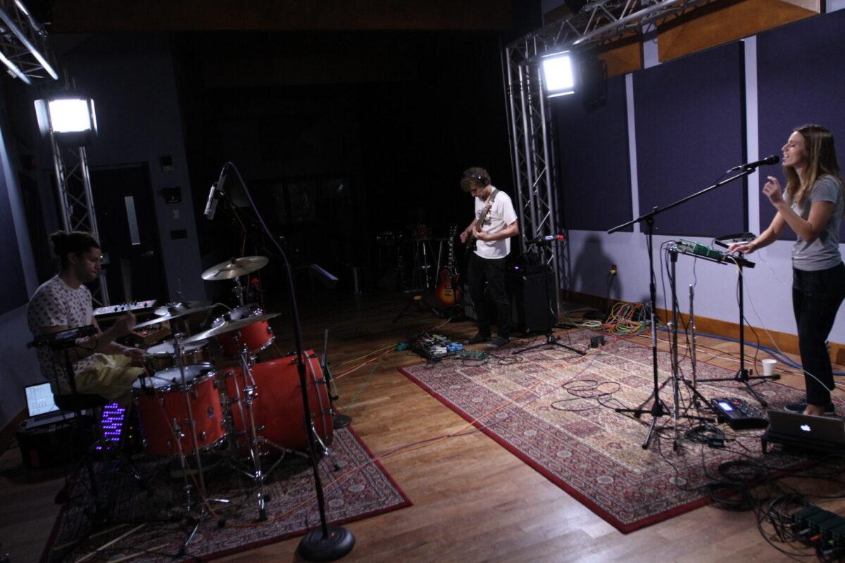 Watching the band live, the duality of their identity is very evident. As Spackman kicks out nuanced rhythms via kit and sampler, Hartman builds layers of sound on guitar and bass, and Ryan juggles singing, keys, sampler, flute, and saxophone, there’s no denying the amount of talent and training the trio possesses. But Ryan readily jumps into dance moves at the mic; Hartmann and Spackman cue one another with playful expressions. They’re intensely focused, but loose, and for more evidence of such, consult their music videos, which are often lighthearted and irreverent.