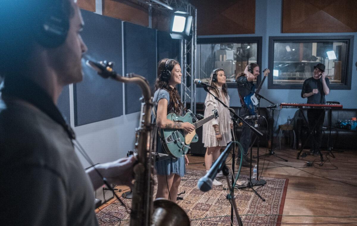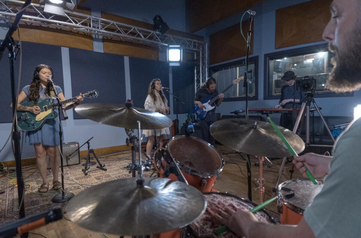 It was recorded with the same lineup that played live in XPN studios this week — bassist Marc Nestman, drummer Andrew Gerace, keyboardist Logan Roth, saxophone player Tom Mentzer, and vocalist Mariah Del Rio. All of them are artists with their own projects as well, but when they come together, they gel impeccably, elevating Andie’s truth-speaking into a collective experience. Together, they process trauma and find healing, and provide a mirror for others in their experience to see themselves and feel less alone.