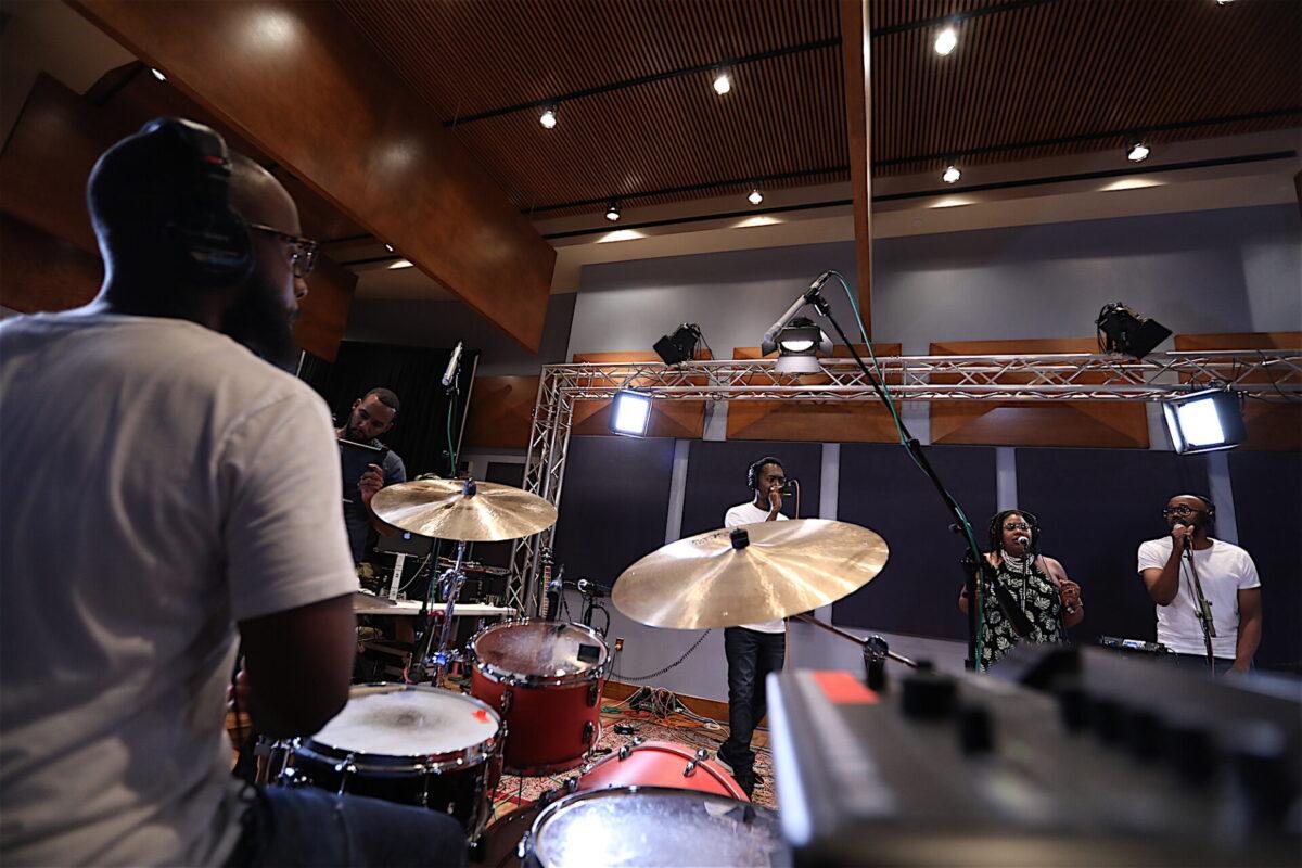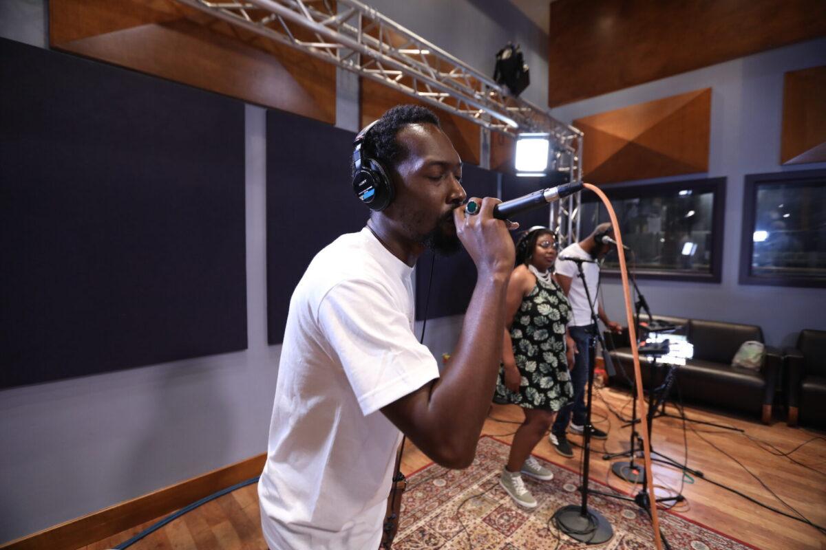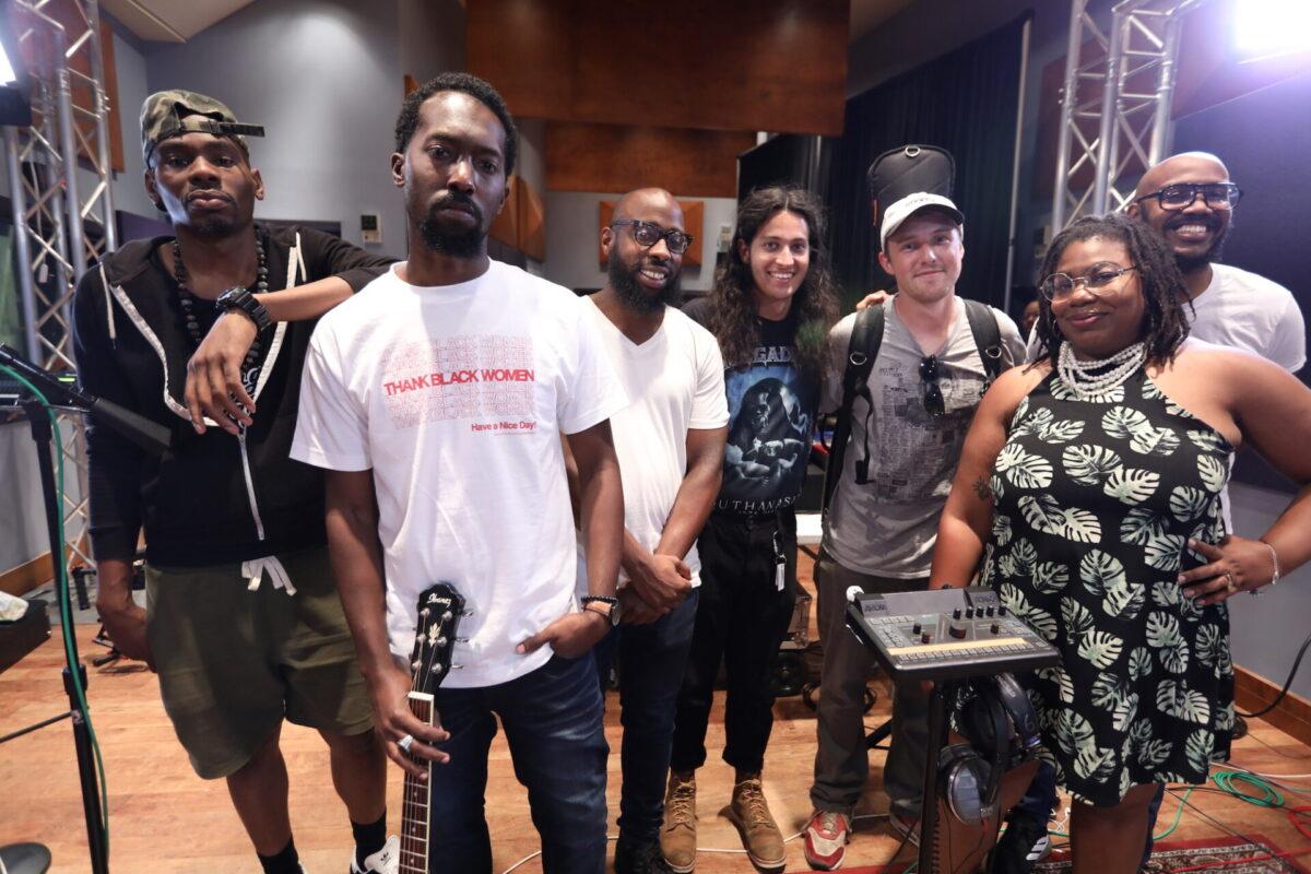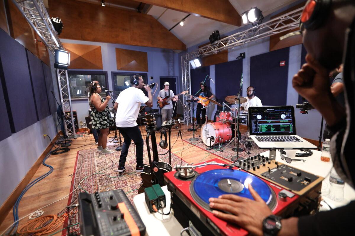 We hear that six-piece band in this week’s Key Studio Sessions performance, and it includes vocalists Elle.Morris and Ron Draper, drummer Anwar Marshall, bassist Scott Ziegler, guitarist Simon Martinez, and turntablist DJ Malc Geez (from the Q Show on Fox and Power 99). Together with them, Khemist makes five songs from the forthcoming Khemtrails come alive in WXPN’s performance space.