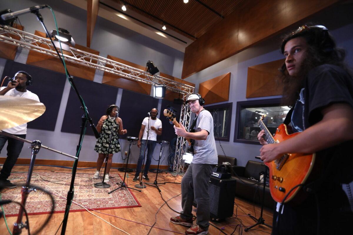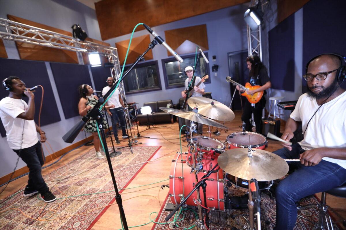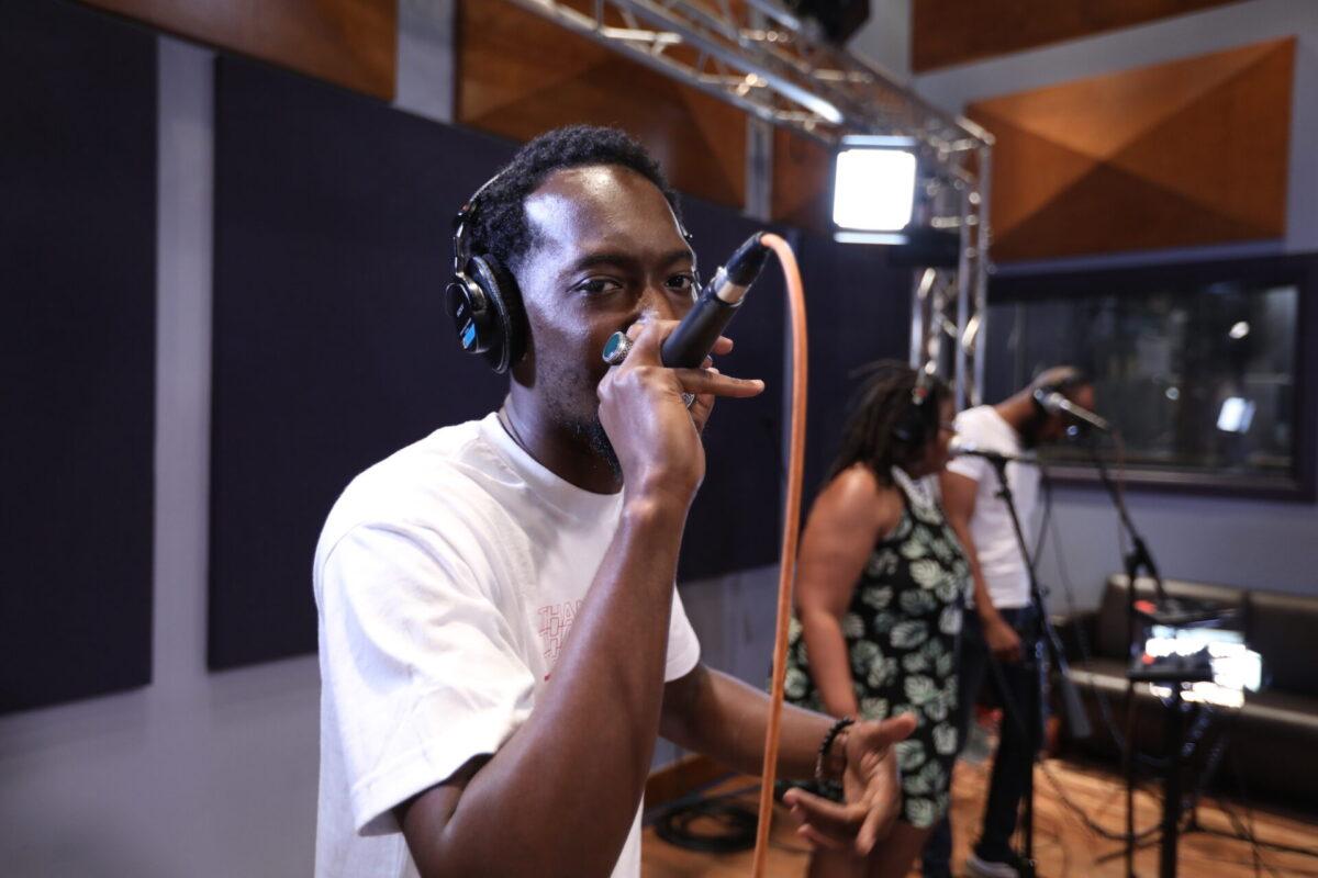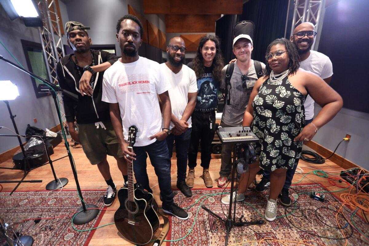 We hear that six-piece band in this week’s Key Studio Sessions performance, and it includes vocalists Elle.Morris and Ron Draper, drummer Anwar Marshall, bassist Scott Ziegler, guitarist Simon Martinez, and turntablist DJ Malc Geez (from the Q Show on Fox and Power 99). Together with them, Khemist makes five songs from the forthcoming Khemtrails come alive in WXPN’s performance space.