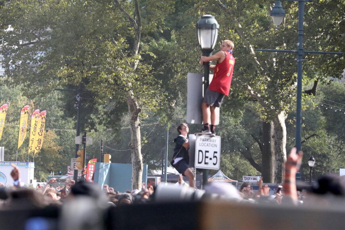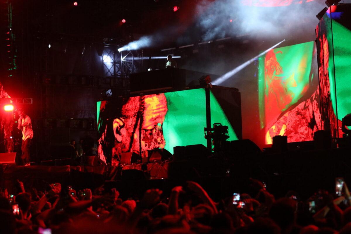 All the people who didn’t show up on day one, making the festival seem more sparsely attended than we’re accustomed to, turned out in force. They shimmied up light poles, climbed trees on the Parkway, and when Scott opened his frenzied set with “Stargazing” from last year’s trippy / awesome Astroworld, it seemed like some of his fans were taking the lyric “it ain’t a mosh pit if ain’t no injuries” as a challenge.