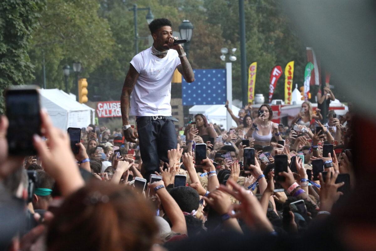 Add into the mix a massively delayed start time on the Tidal Stage by Megan Thee Stallion, who hit 35 minutes after she was supposed to, and delay was the order of the day. (It’s worth noting that Blueface, who was ridiculously tardy at the Roots Picnic in June, took the stage reasonably close to on time, and his performance was rowdy, raunchy, and engaging, with much of it spent in the thick of the crowd with breaks to take selfies.)