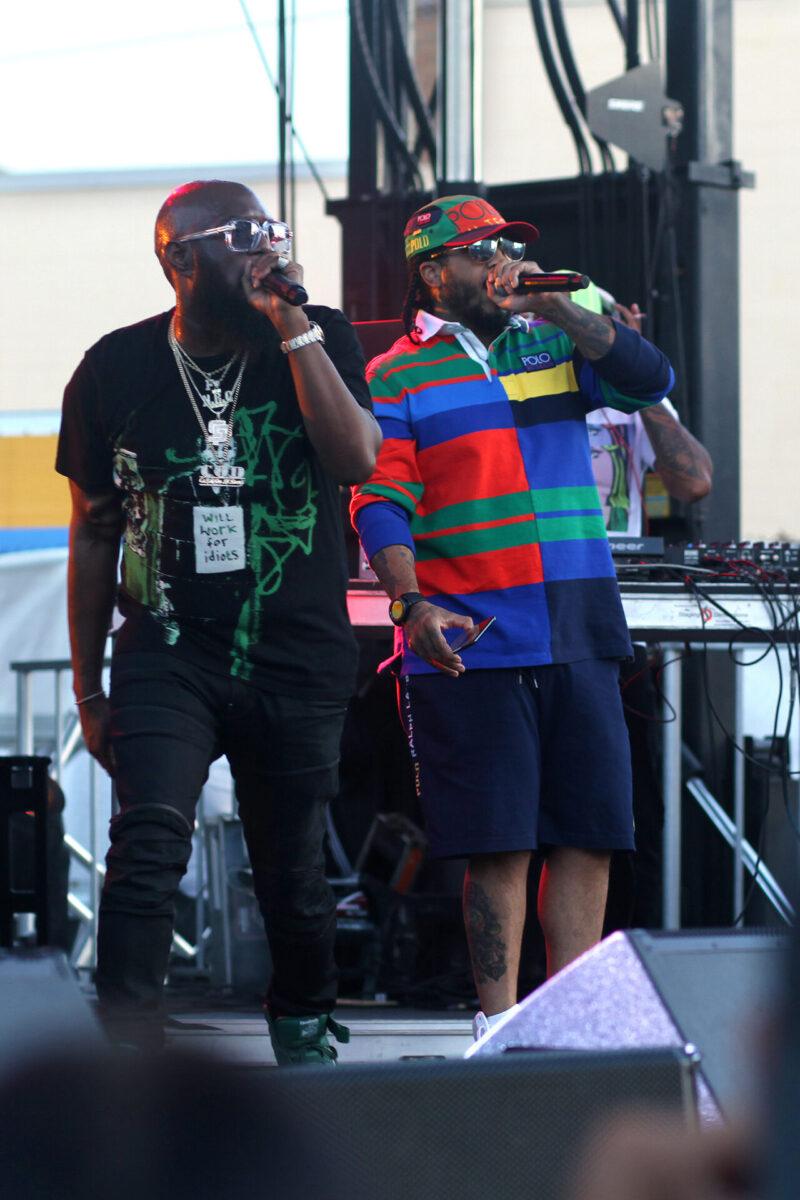 A trio of Philly rap stars fared much better: State Property affiliates Young Chris, Peedi Crakk, and Freeway, who rocked the stage decked out in a t-shirt emblazoned with the phrase “Will Work For Idiots,” a subtweet and a half right there.