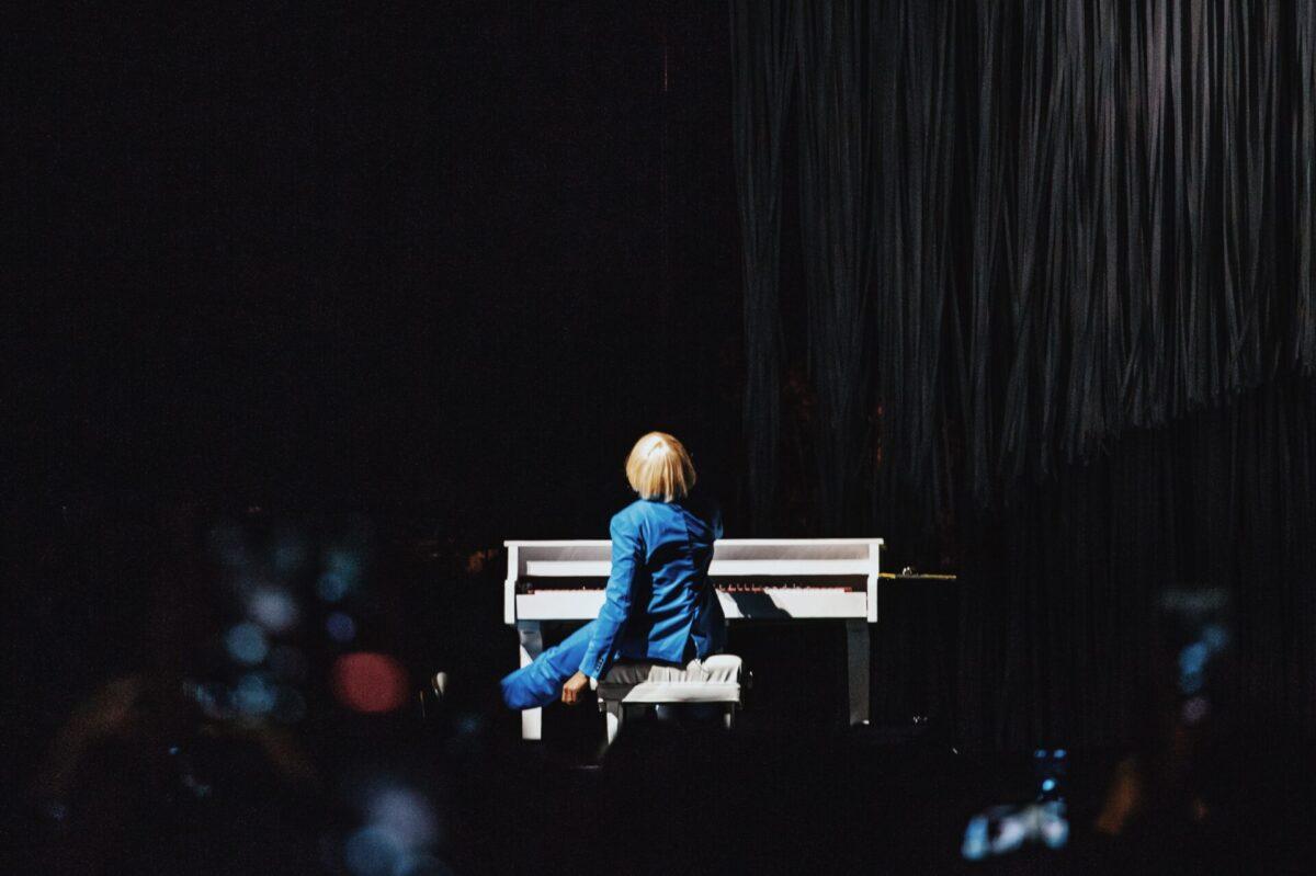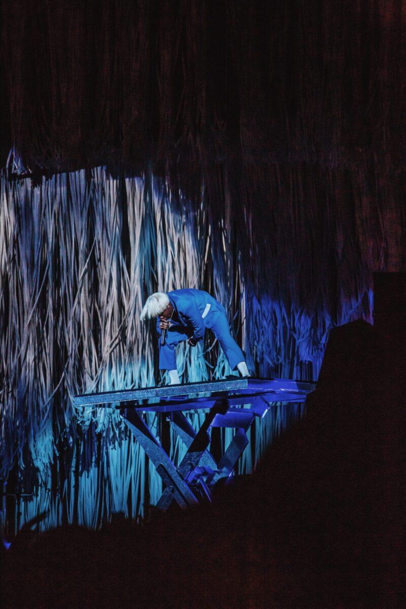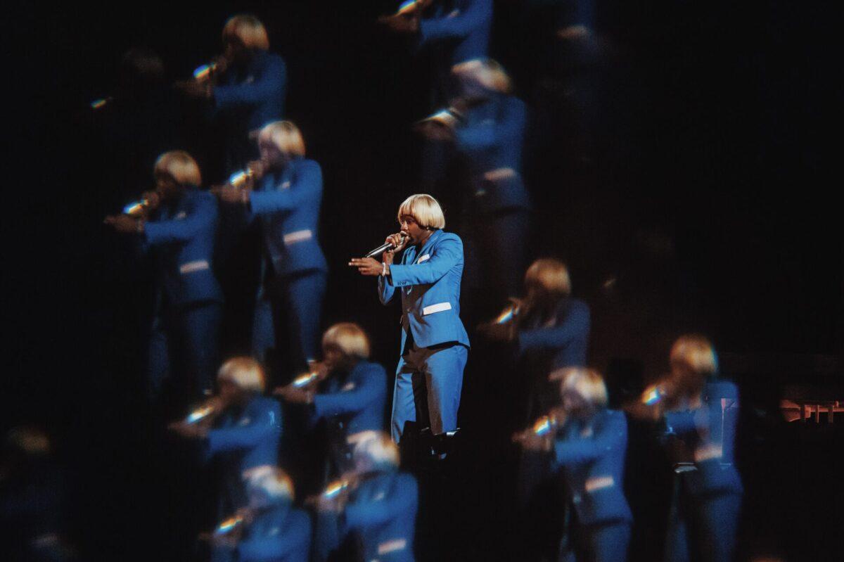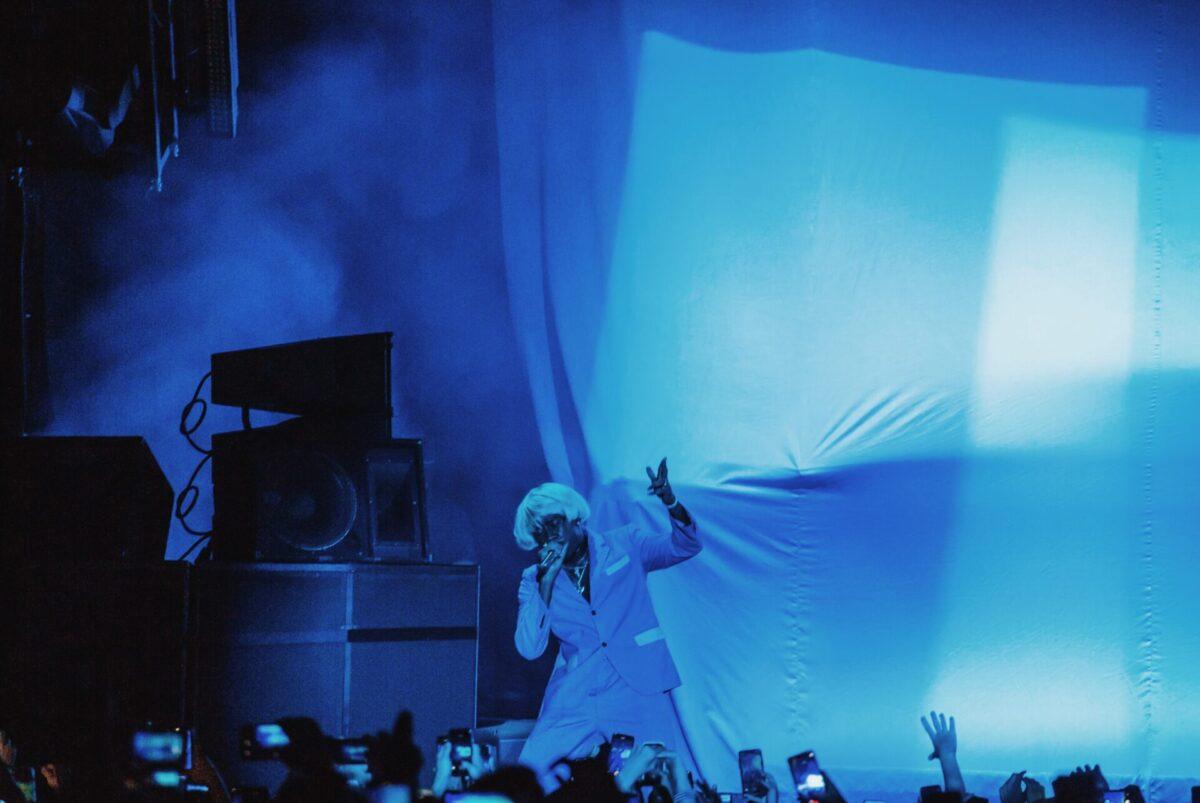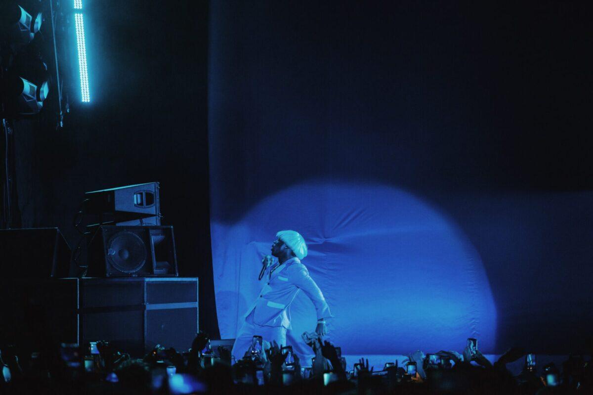 Things you might see at a Tyler, the Creator concert: gold hair and gold chains. An iridescent blue two-piece suit that gets progressively more disheveled as the night goes on. A person holding a mic, doing high-kicks and spins, moving deftly between so many bursts of actual fire. A quick breather as they sit on a piano stool to plunk out the introduction to the mega-banger “Earfquake,” then leaping to their feet when the beat drops.