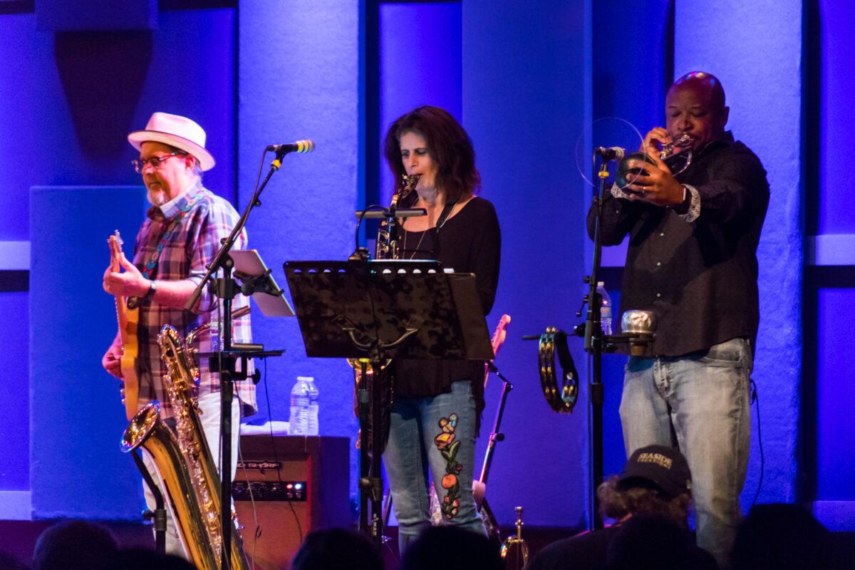 Backed by his seven-piece band Self Made Men + Dana (so named because the band is made up of six men and one woman, saxophonist Dana Robbins), Delbert, in his khakis and polo shirt, opened the show with the new album’s “Mr. Smith,” the lyrics appropriately announcing that he’s “back in town.” Tall, Dark & Handsome takes a look back at McClinton’s Texas roots, and while the prolific artist realizes what a long journey his 60+ year career has been, he doesn’t dwell on the past.
