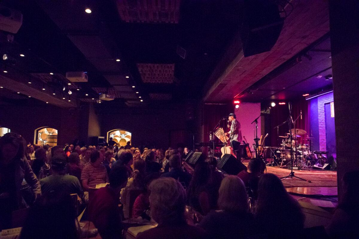 Along the sights of countless wine bottles as wall decoration, and barrels as reminder of its industry through its two floor tower, the music room itself is fascinating: low ceilinged, but wide, (very much like World Café Live across town) no one misses an opportunity to see and be seen by the performers on stage, a bricked scrim/wall that resembles that of a comedy club’s tradition. That level of intimacy is re-doubled by the fact that – at least at the Harris show – the intensity and density of the sound was the same no matter where you stood. The consistency of tone could be heard at the bar in the back where I sat or toward the middle at the sound board where I stood as a test. To carry through with City Winery’s dedication to intimacy (again, at least at the Harris show), was how quiet the mix was – you actually HAD TO LISTEN to HEAR, and happily focus on the music in which to complete the experience. It has to be part of their trick – the way a lover’s whisper, rather than a scream, truly draws you in as part of the seduction.