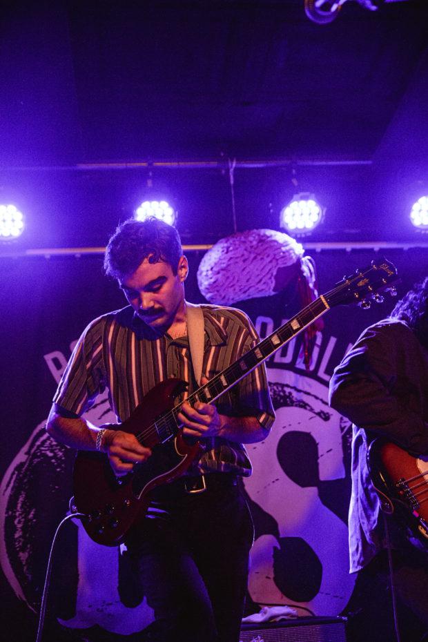 The Vernes took the middle slot of the night, with a newly expanded lineup with bassist Jesse Defrancesco allowing previous bassist Cole Berggren to move over to keys and endless chill pop charisma and sick leads. Matthew Gragg’s delivery was on point and endearing as he bopped around at center stage and leaned into the mic to make room for Fabian Mera’s axe-swinging guitar solos. Fan fave “Fcking Drones” was a highlight, and their new releases Yr of the Rat and Maybe I’ll feel Better When I’m Dead were well-repped.