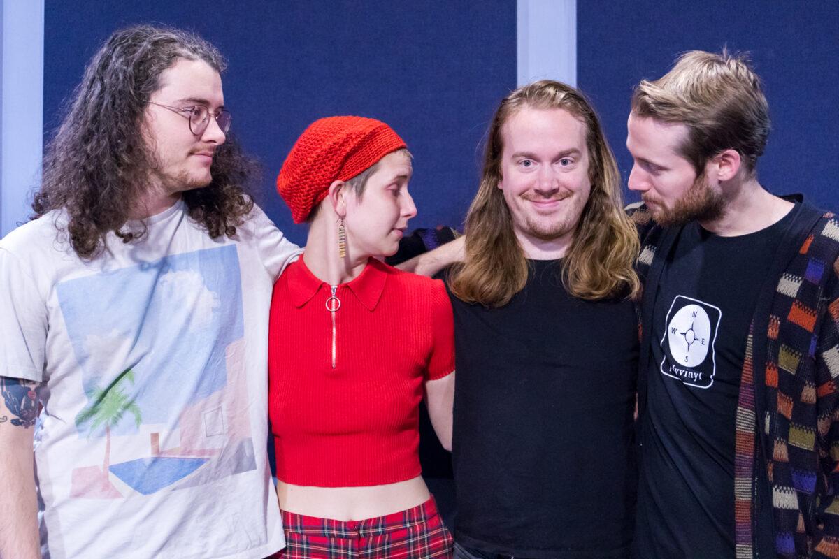 Joining us in the studio for this Indie Rock Hit Parade live session are Seattle’s “snack rock” pioneers, Great Grandpa. Formed in 2015, the group quickly gained acclaim upon the release of their debut album, Plastic Cough, in 2017. Earlier this year, the band’s second album, Four of Arrows, cemented their place as major players in their hometown’s musical renaissance. Not saddled by the city’s reputation in the late ’80s and early ’90s, Great Grandpa forge a sound that is layered and nuanced, with a few good screams thrown in for good measure. Usually performing as a quintet, a four piece version of Great Grandpa visited our studios to showcase the new songs.