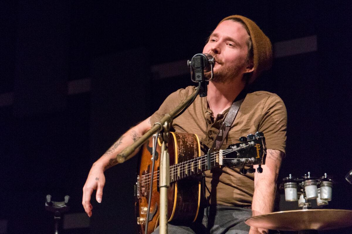 We caught Christopher Paul Stelling in the middle of a long journey. “We crossed the country three times already, and we’re about to do it two more,” the New York singer- songwriter told a packed house at World Café Live for today’s Free at Noon concert. After going from the rousing opener “Trouble Don’t Follow Me,” and into the pensive folksy tune “Have to Do For Now,” he explained that the road is actually just beginning.