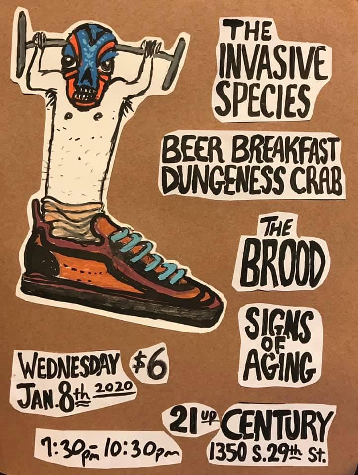 On Wednesday the 8th Skeleton Key favorites The Invasive Species are playing a show at Century with Beer Breakfast Dungeness Crab – yes, a band named after the West Philly corner store and deli from a few years back – Signs of Aging, and The Brood. I’m excited for this one not just cause it’s a cool mixed bill full of old friends doing new things but also cause this year The Brood are finally going to put out an album, something all of us have been clamoring for since they added Bill Chamberlain (The Pist, Behind Enemy Lines, Mankind?, and countless other bands from the New Haven and Pittsburgh pantheons) on second guitar about a year and a half ago. They were a good band before and they’re a great band now and I can’t wait to see what they do next.