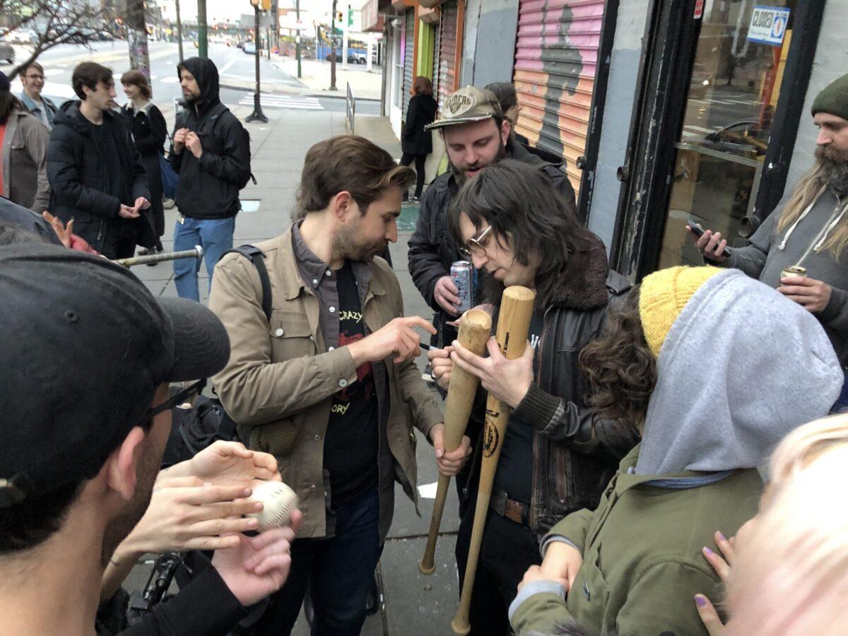 “This place has always brought people together,” said Gavigan, and that spirit was in the air throughout the day — friends and acquaintances embraced beneath the giant papier-mâché baseball propped up in back, shared smokes out front, pored over show posters and picked up excess bats and balls up for grabs around the room.