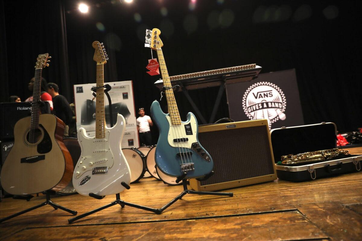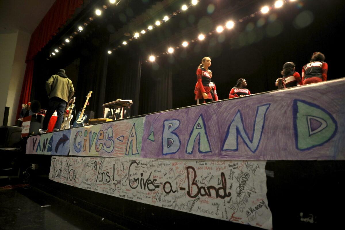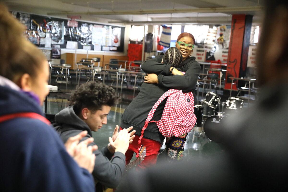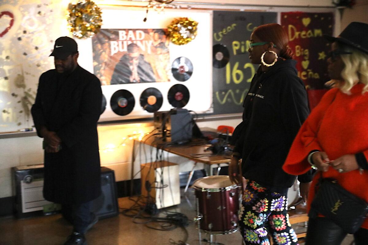 After presenting the musical instruments as part of an assembly in front of the entire student body gathered in the auditorium — an event which included a group of budding rappers from the school taking the stage for a freestyle, and a teacher jumping into the cypher at one point — Whack linked up with a group of music students and teachers to visit their instruction and recording space.