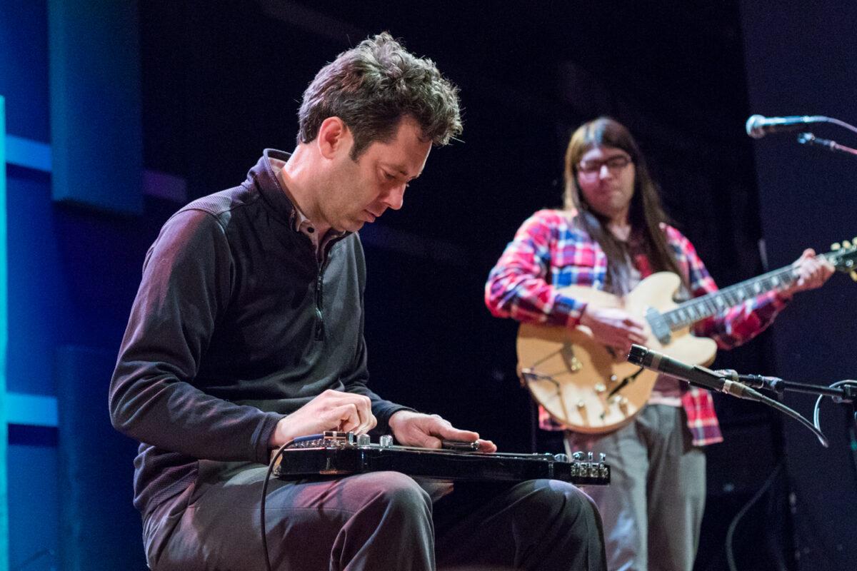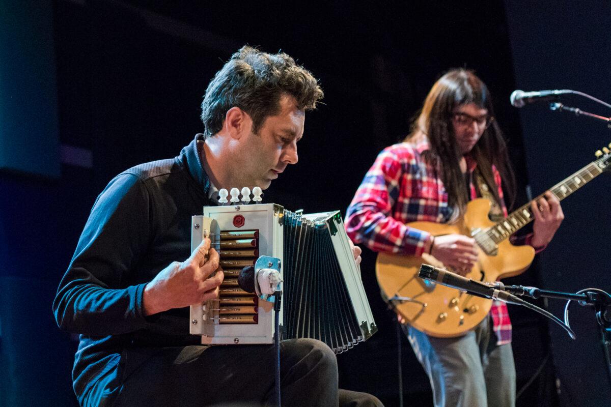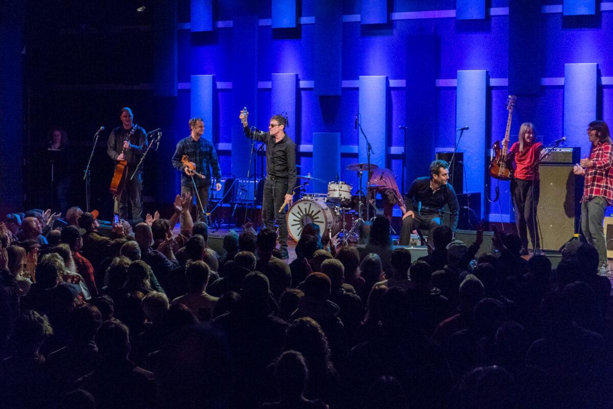 In the second half of the show, we heard “Dirty Old Town,” a high-energy take on The Clash’s “London Calling” (apropos, since Joe Strummer shared lead vocals with Stacy in a post-Shane 90s iteration of The Pogues), and the set’s highlight, a transcendant rendition of “The Auld Triangle.” In it, Stacy’s funereal vocal performance was backed by swirling static and drone from Andre Michot’s cajun accordion and Jonny Campos’ guitar, with Eric Heigle slapping a triangle laid out on the stage during the chorus; magic.