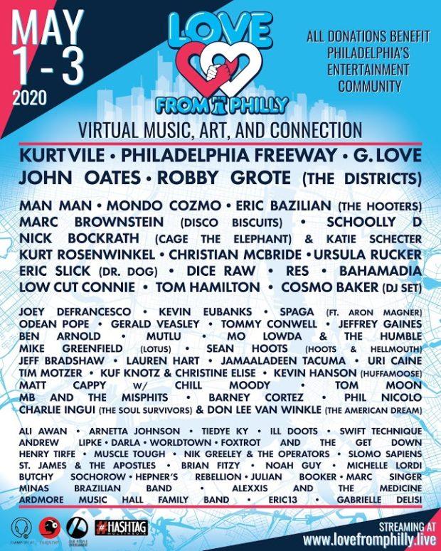 Artists will perform from their homes and the festival will stream live at lovefromphilly.love. Set times will be announced soon, and the full lineup can be found below, along with an announcement video featuring G. Love playing “Philly Love.”