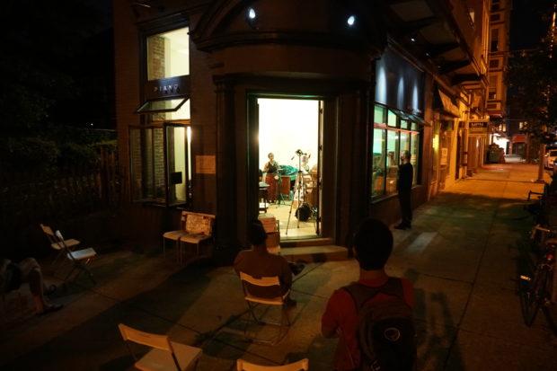 Last night I swung by the Suzuki Piano Academy during the monthly Warp Factor 9 performance to take in some jazz from the sidewalk outside. Though the series shifted to a livestream immediately when quarantine was announced, this month concert organizer Erica Corbo did set a few chairs up at a distance from each other in case anyone wanted to watch Joel Fass and The Rhythm and Resistance Collective through the open windows and doors.