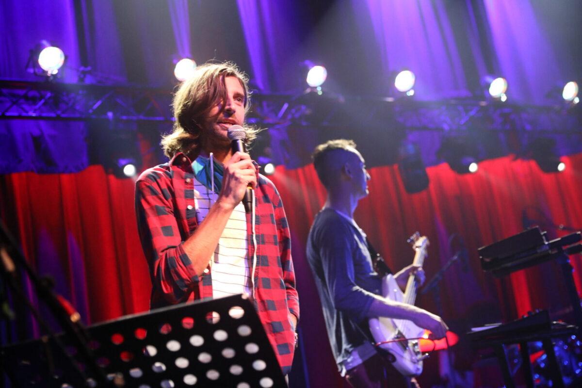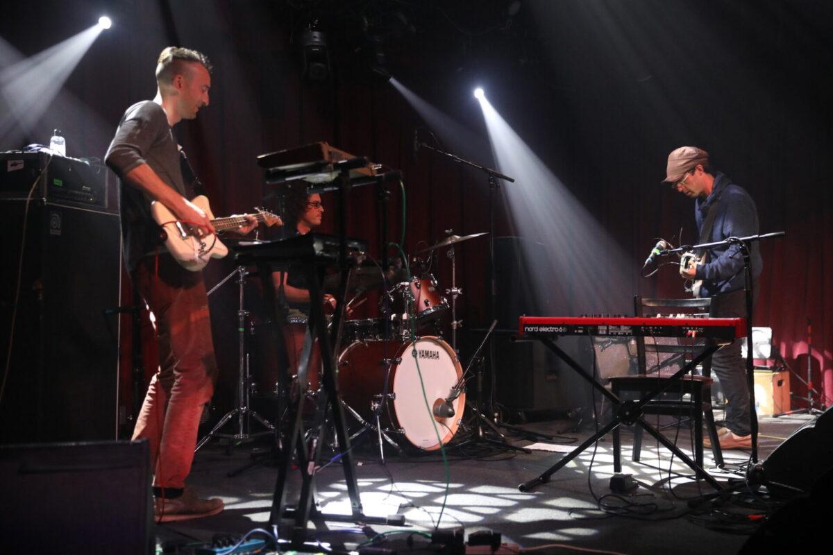 A new trio configuration of art-pop favorites Clap Your Hands Say Yeah kept the vibe of the night in cosmic orbit. The band, which finds longtime songwriter and frontperson Alec Ounsworth joined by Todd Erk on bass and Jonas Osterele on drums, balances its energies between dreamy synthesizer-dipped psychedelia and solid pop melodies. Ounsworth was reserved for the first couple songs, taking the first break to acknowledge “We’re a bit nervous…I’m nervous anyway. This is our first show in a long time and it’s weird to come out of the cave.” The warm reception in the building, as well as from fans on the Zoom grid, had Ounsworth and his bandmates loosening up and stretching out across a dynamic range — the solo piano emotion of “Ambulance Chaser” from 2017’s The Tourist sitting beautifully alongside the jangley “Misspent Youth” from 2011’s Hysterical.