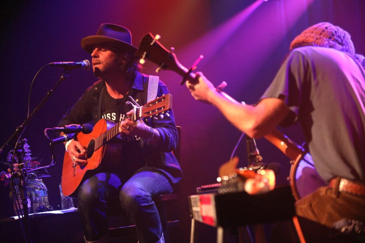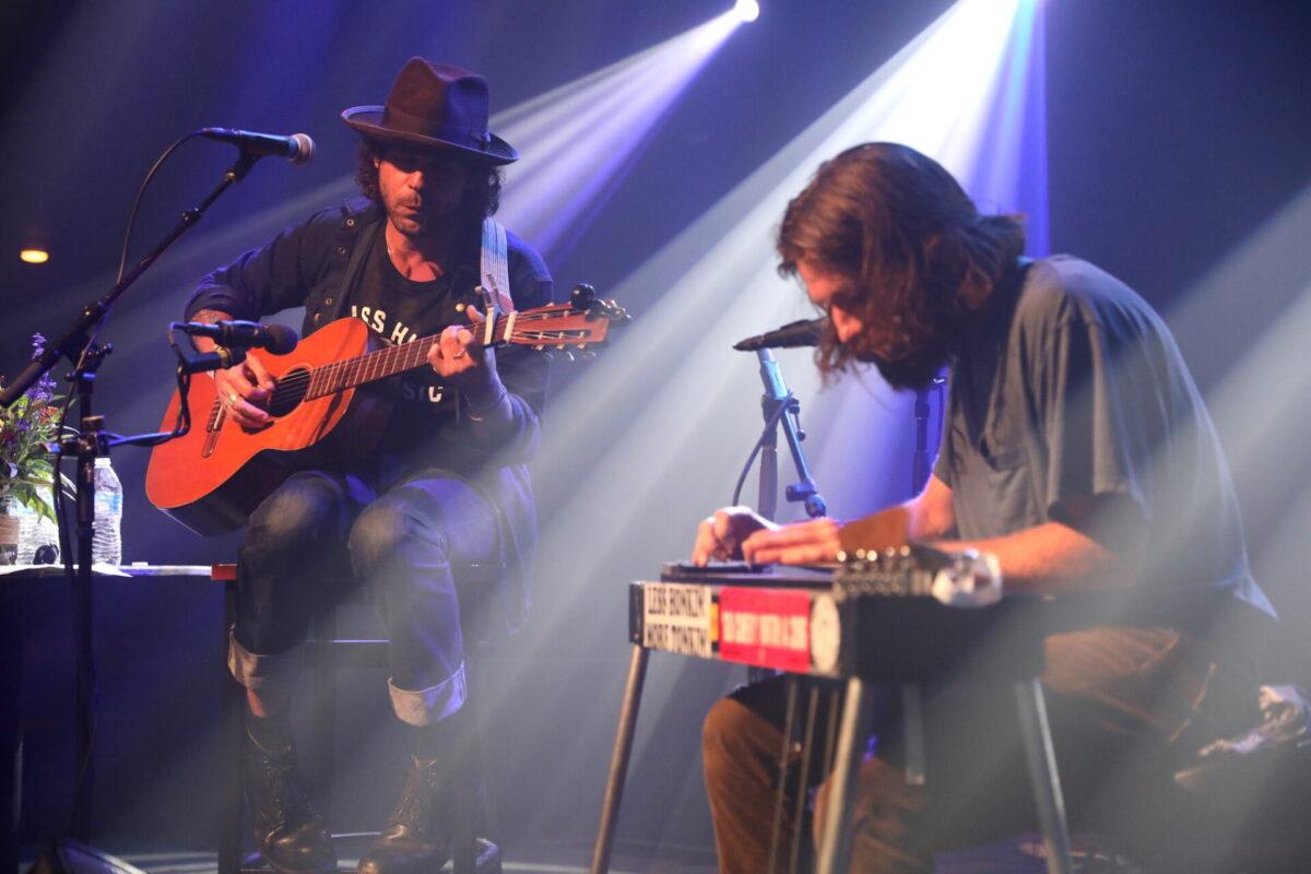 The Nashville-based, Bucks County-born Langhorne Slim closed the show with a set composed largely of new material. “All of these songs are about Council Rock,” he joked. “If we make it through last song, we’ll do ‘Neshaminy Middle School Blues.'” In all seriousness, Slim’s new selections were rooted in trauma; this winter, Nashville was devastated by a tornado, Slim said, and then the world was turned upside down two weeks later by COVID. As such, the new music addressed themes of displacement, mental health, and hope for a better world, and Slim played them wearing a t-shirt reading “Missing Hugs and Live Music” and accompanied by Matt Davidson of the band Twain. When he wasn’t singing, Slim was interacting with fans on the Zoom grid, taking requests from some, joking irreverently with others, and wishing one engaged couple a happy wedding (their first dance song will be his duet with Jill Andrews, “Sea of Love”).