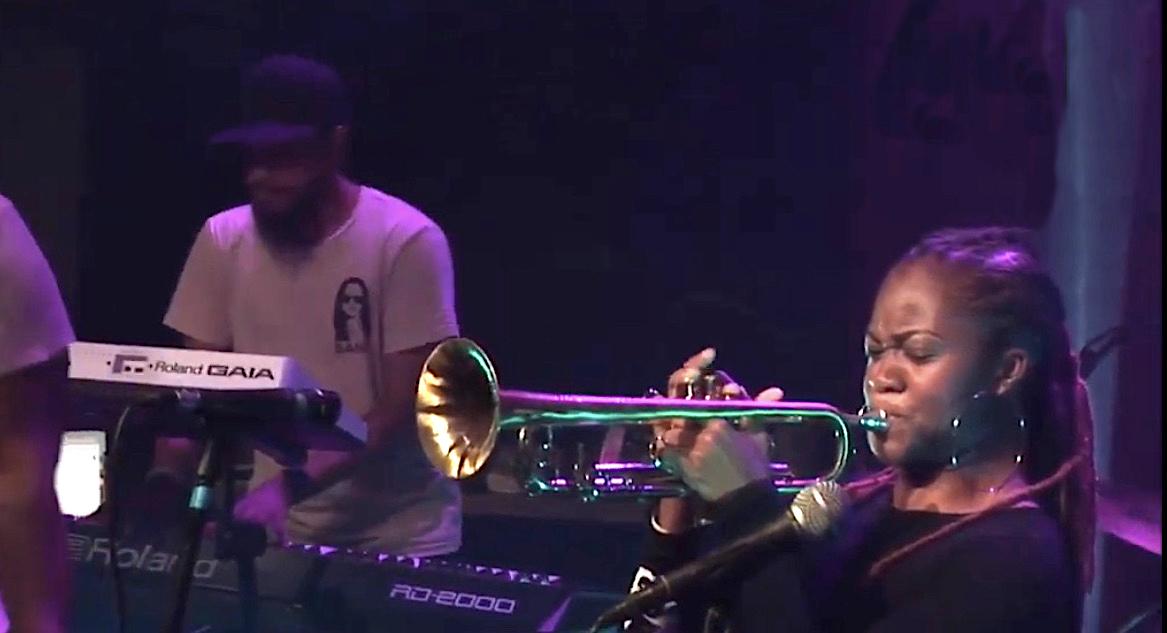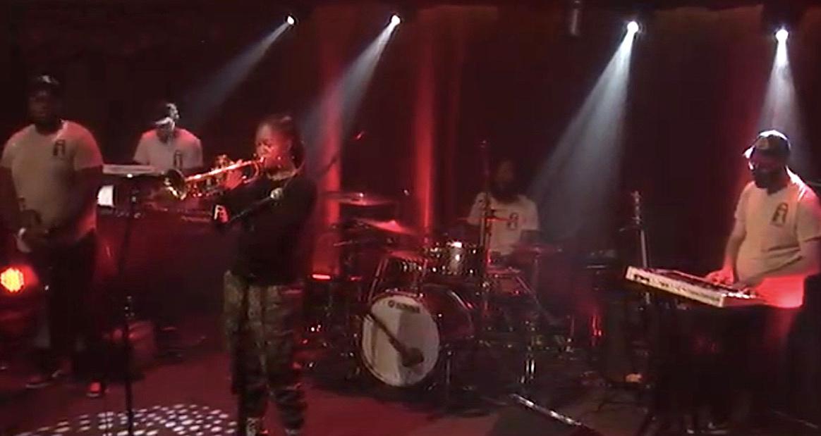 Trumpeter Arnetta Johnson and SUNNY returned for a second night in the mix, reprising some highlights from night one (“Take Me To IsReal” was just as good the second time around) while also diving into the swaying drum machine vibe-out “I’m Just Sayin” and a Bill Withers tribute of their own to close their set. “I got a question for y’all in these virtual streets,” said Johnson. “Do we have any Bill Withers fans in the house?” She led each of her bandmates into the song, adding one part at a time — a kick drum, a bass line, a horn melody — until it was clear that they were doing a massive rendition of “Lovely Day.”
