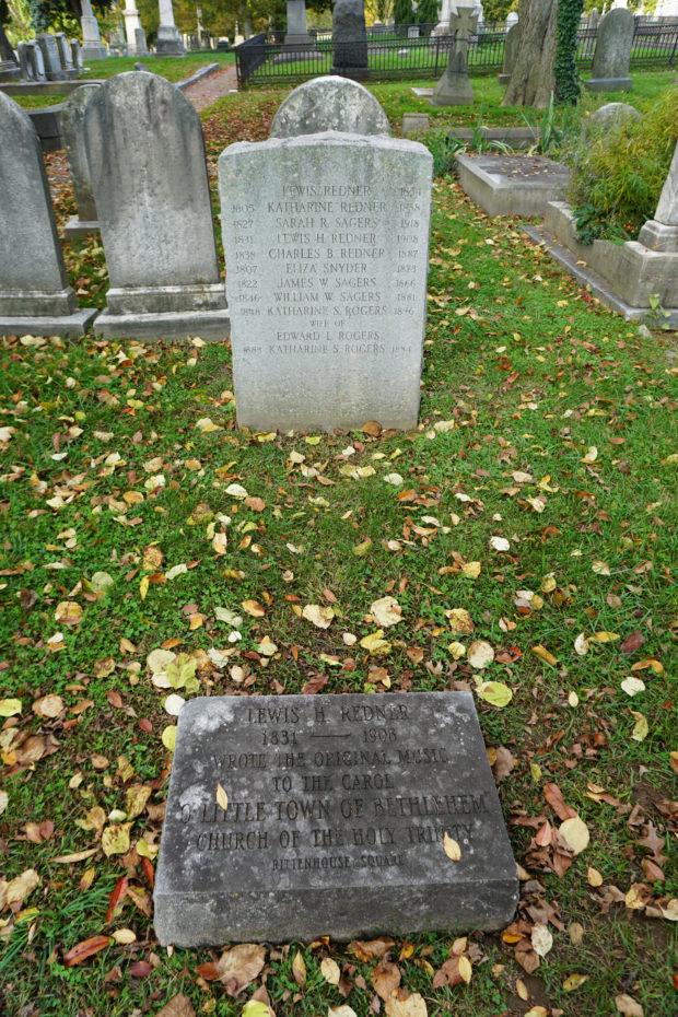Although Brooks moved to Boston to take on the rector role at the huge Episcopal church there, Redner never left the Philly area and is buried at Woodlands Cemetery.
