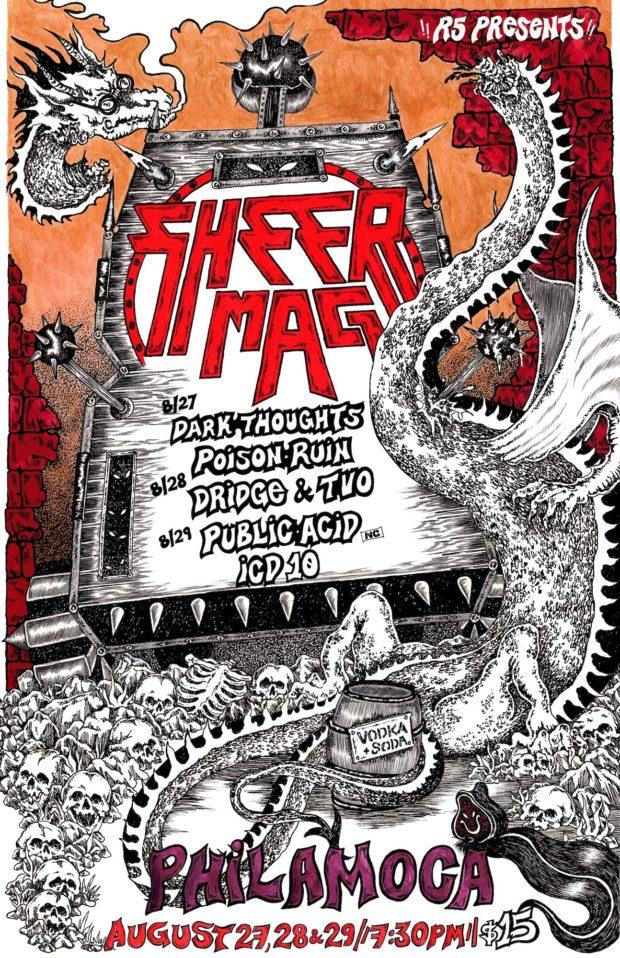 Saturday you have a choice between a sold out night two of the Sheer Mag PhilaMOCA weekend residency – Dridge and TVO – and over at Laurel Hill Cemetery a screening of Phantom of the Opera with accompaniment by the Not So Silent Orchestra. Finally the last event on my calendar is that Sunday with, yes, Sheer Mag, this time with Public Acid and ICD 10. That show might even still have some tickets available but you better act fast.