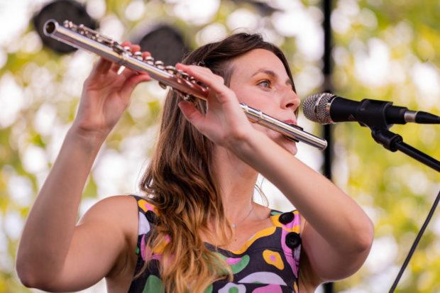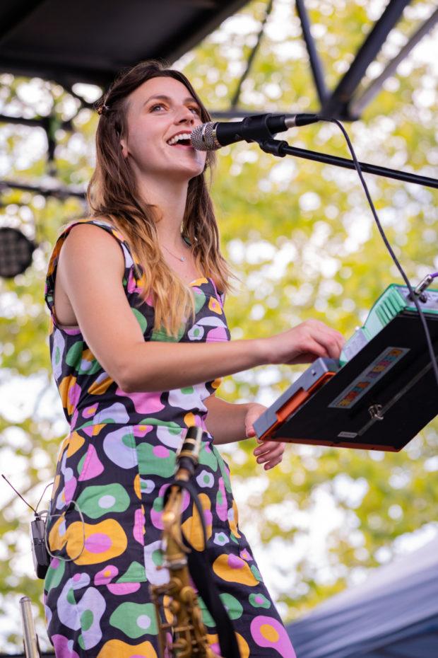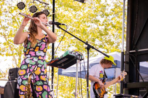 Despite delivering a playful set, their expert musicianship wasn’t lost. It was astonishing to watch the sheer amount of instruments they incorporated into their performance. While they had the typical bass, guitar, and drums, they also included a saxophone, flute, and various other forms of percussion. Frontperson Jill Ryan made it look effortless as she switched between playing lead melodies on the flute and hitting dizzying high notes.