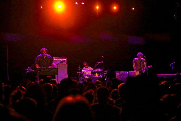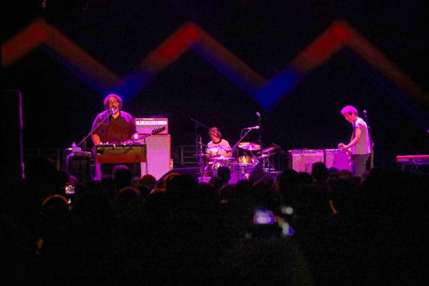 Set two came out swinging with another Riot song, “Out of the Pool,” a dirty groove ride up to an explosive crescendo, followed by Painful‘s “From A Motel 6,” the poppiest number (and also the punchiest) up to that point. It would be unfair to say the second act took on a “greatest hits” vibe, but the crowd clearly loved bopping to the baseball stadium organ groove of “Moby Octopod” from I Can Hear The Heart Beating As One; it loved raging to the Popular Songs earworm “Nothing To Hide”; and it loved swooning to “Tom Courtenay” from Electr-O-Pura.