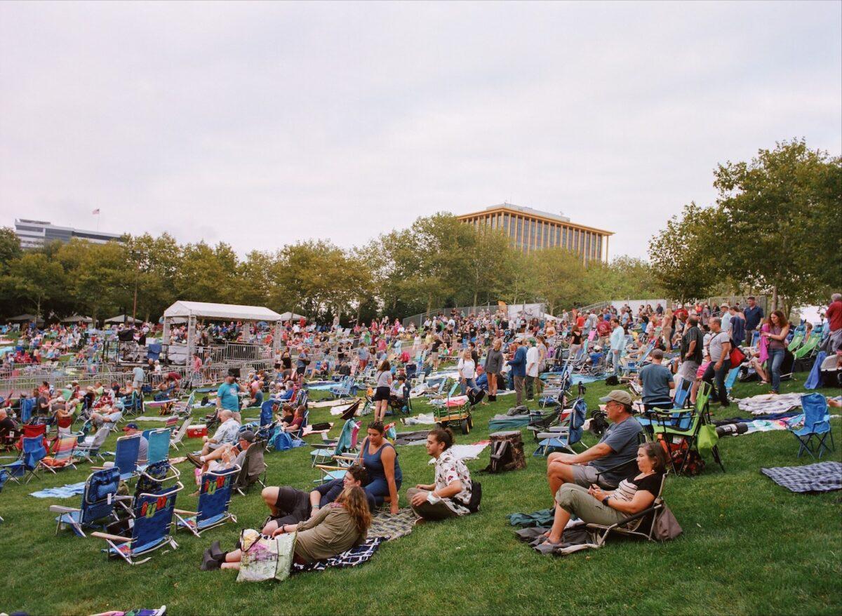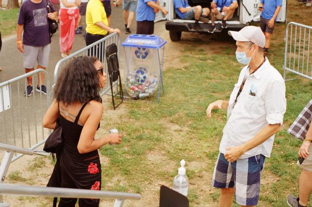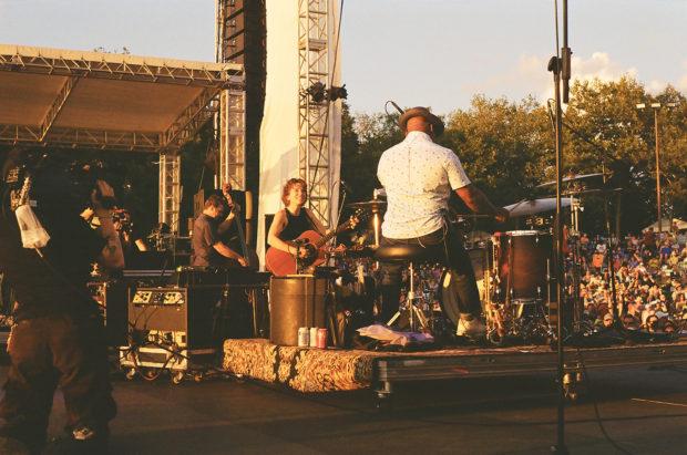 Key editor John Vettese has done the XPNFest analog thing in the past, and brought back his Ricoh XR 35 mm to shoot a roll of color film throughout the weekend. His focus was largely the folks onstage or about to get onstage — including a sunset-dappled Nicole Atkins and her band prior to their Marina Stage set, or an equally golden-hour-soaked Ani Di Franco playing her Saturday headlining set on the marina stage. But candid moments made their way in as well, like XPN’s Mike Vasilikos reviewing a setlist with Jade Bird, or his fellow host Rahman Wortman hanging riverside with Arthur Thomas of The Funkitorium.