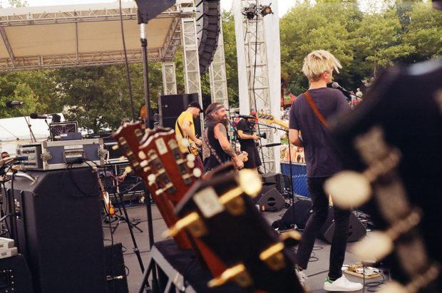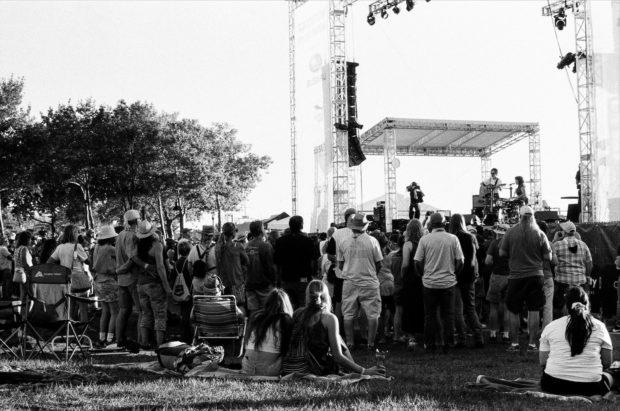 Key contributor Paige Walter did a little bit of everything at XPoNential this year: written set recaps, live photography, and social media updates on Instagram. Paige also carried two Pentax cameras with her: a K1000 35 mm camera and a 645 medium format camera shooting 120 mm film. Her cameras were conversation-starters and her images brought a candid, street photography-inspired look to the festival setting, capturing scenes of the crowd enjoying The Record Company, fans setting up picnic-style on the lawn, and hammocks hung from the Wiggins Park trees.