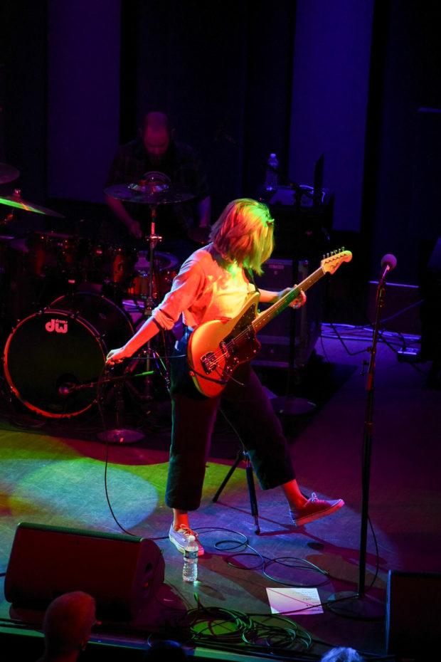The opening “7:30 a.m.” roared from jangle-pop to punk overdrive; it was followed by the sassy “Cranium,” where frontperson Leah Wellbaum put her guitar to the side to groove and gesture; early set stand-out “Courtesy” moved to a pensive trip-hop beat as Wellbaum’s soaring voice channeled Kate Bush and Siouxsie Sioux. “I tried to play it cool but I’m coming in hot,” she sang, and it’s an apropos lyric if there was one — there’s no pinning Slothrust down to a single sound.