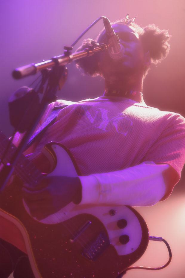 Dacus had different openers for each night, and each both brought a unique energy to the room. Philly-via-Vegas artist Shamir got the show started on Wednesday night, playing his first show since the pandemic and debuting the current power-trio configuration of his band. Compared to the effervescent studio arrangements of the pop/rock anthems he’s released over the past year, the Shamir live exprience had a raw edge to it, with songs bopping but more often raging. This was particularly true of a new one towards the set’s end that Shamir told the crowd was written about police brutality. It swelled to an explosive crescendo that had the room wrapped up in its fury; though his music is often viewed as lively and fun, this showed that Shamir is just as skilled at filling his songs with non-sugarcoated anger. His big 2020 single “On My Own” closed out the set, and while it might have been a party anthem elsewhere in the night, here it felt like a mellow come-down while the room continued it process of self-reflection.