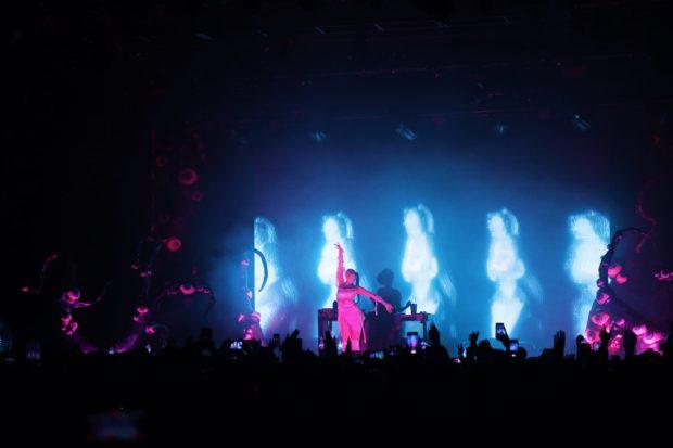 Touring in support of her 2021 mixtape Demidevil, Ashnikko brought a theatrical flare to her performance. The stage was decked out in a Pan’s Labyrinth-ish tangle of eyeballs and tentacles, harsh strobes and moody spotlights lit the macabre scene, and Ashnikko danced, stretched, body-slammed and generally threw herself into the short but impactful set.