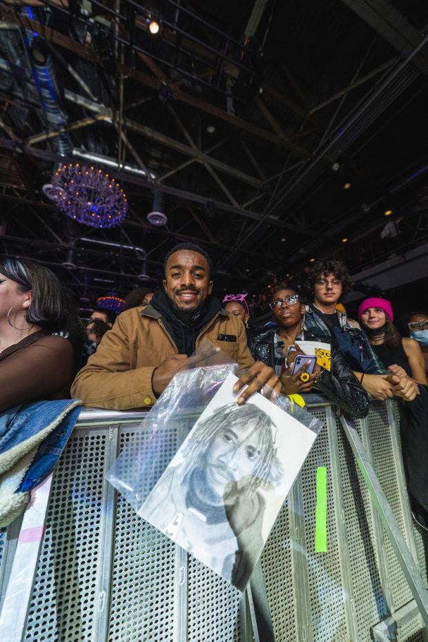 Back at the Fillmore people were packed in shoulder to shoulder waiting for the for the show to begin. In the crowd I noticed a lot of anime and cartoon graphic tees, which resonates with Thundercat’s fandom for series like Dragon Ball Z, Naruto, and Cowby Bebop. I even spotted one fan with a hand drawn portrait of Thundercat on the rail, who received a shout-out from Thundercat as before the set began.