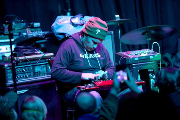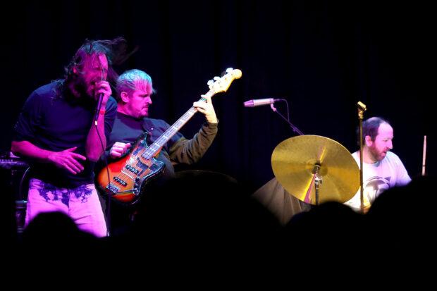 The show began with a mesmerizing set from experimental guitarist and soundscaper Bill Nace, known for his Body/Head collaboration with Sonic Youth’s Kim Gordon as well as his solo work; he played what appeared to be a modified electric lap steel, delivering a whirring and wild expanse of raucous feedback and drone. Long running punk three-piece Pissed Jeans followed, revved up and sardonic as always — between ragers like “Have You Ever Been Furniture” and “Bathroom Laugher,” lead vocalist Matt Korvette delivered his usual non-sequiter banter, asking the audience to pass any beanies to the front (“I just want everyone to be safe”), and commenting on local real estate (“do you do Zillow here?”) and the surreality of a gig at the Jersey Shore in general (“we’re playing Margate tomorrow if you’re around”).