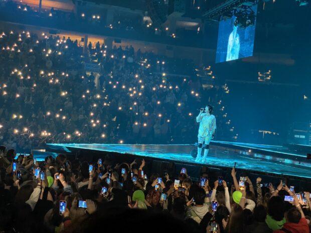 The singer-songwriter and modern rock star had the Wells Fargo Center packed to the rafters last night for her Happier Than Ever tour; no small feat for a Sunday in February. Racing across the stage and up the catwalk to the riveting rhythm of “bury a friend,” Eilish leapt, pivoted, and pogoed, urging the sea of electrified fans to join her in singing along; the room was promptly soaked in deep red lights and a multitude of screaming voices.